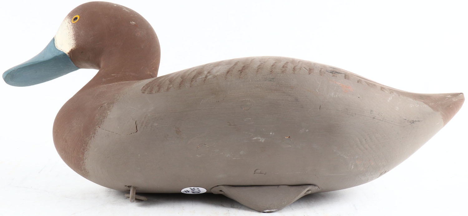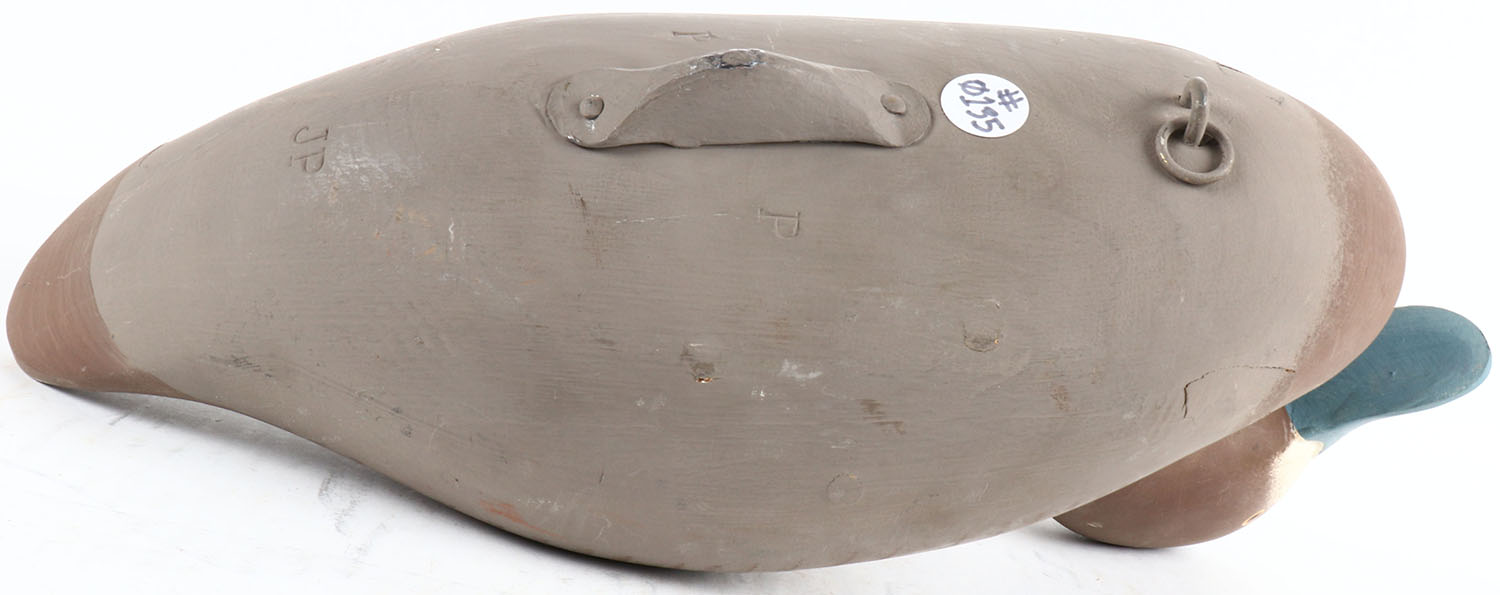 Bluebill Hen by Jim Pierce, Havre de Grace, MD, solid wood, painted eyes, mint original paint, structurally excellent, Stamped with JP. Grade: MINT - Value: 60 to 150