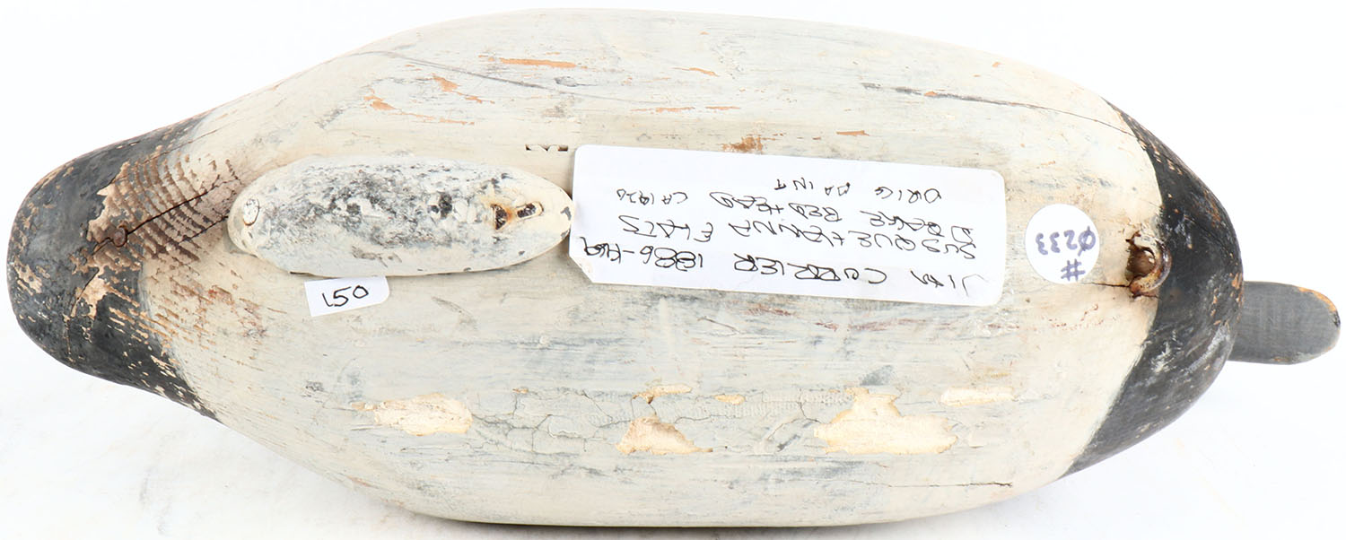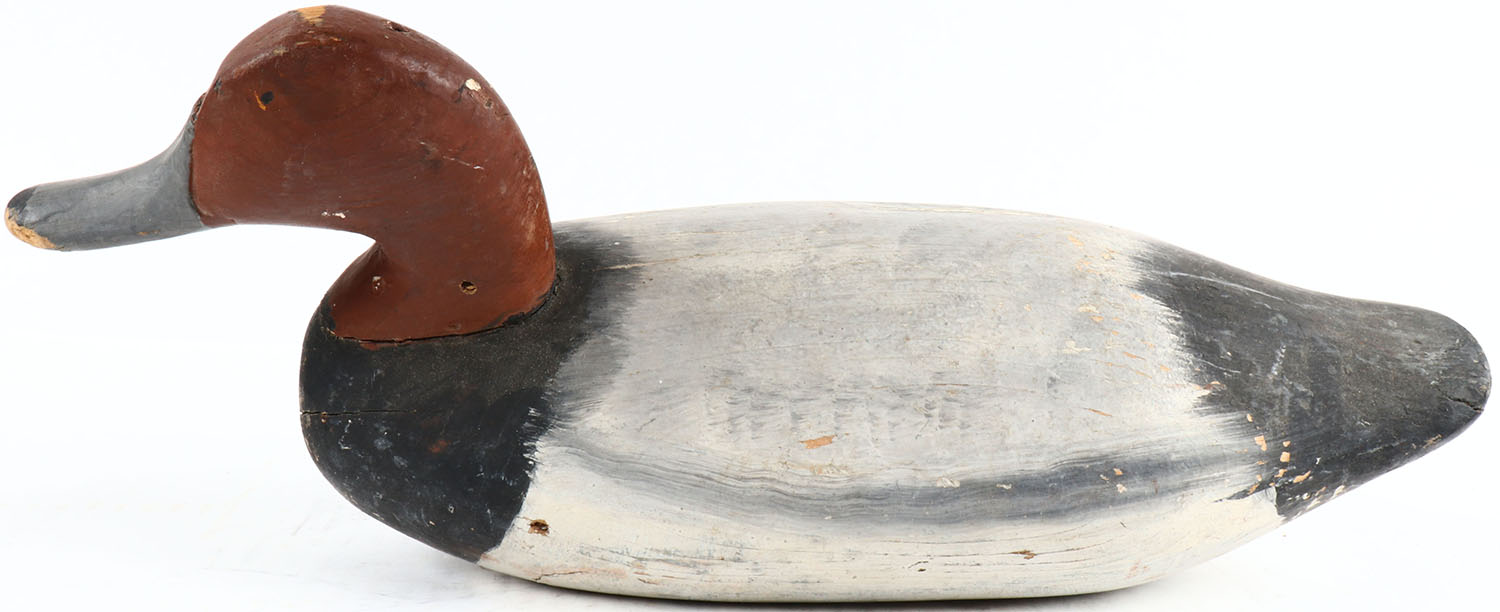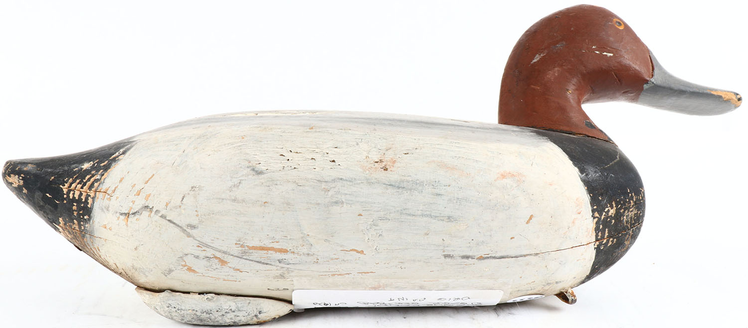Redhead Drake by Jim Corrier, Susquehanna Flats MD, 1886-1969, PE, solid wood, original paint with some wear from use. Grade: Very Good ++ - Value: 50 to 150