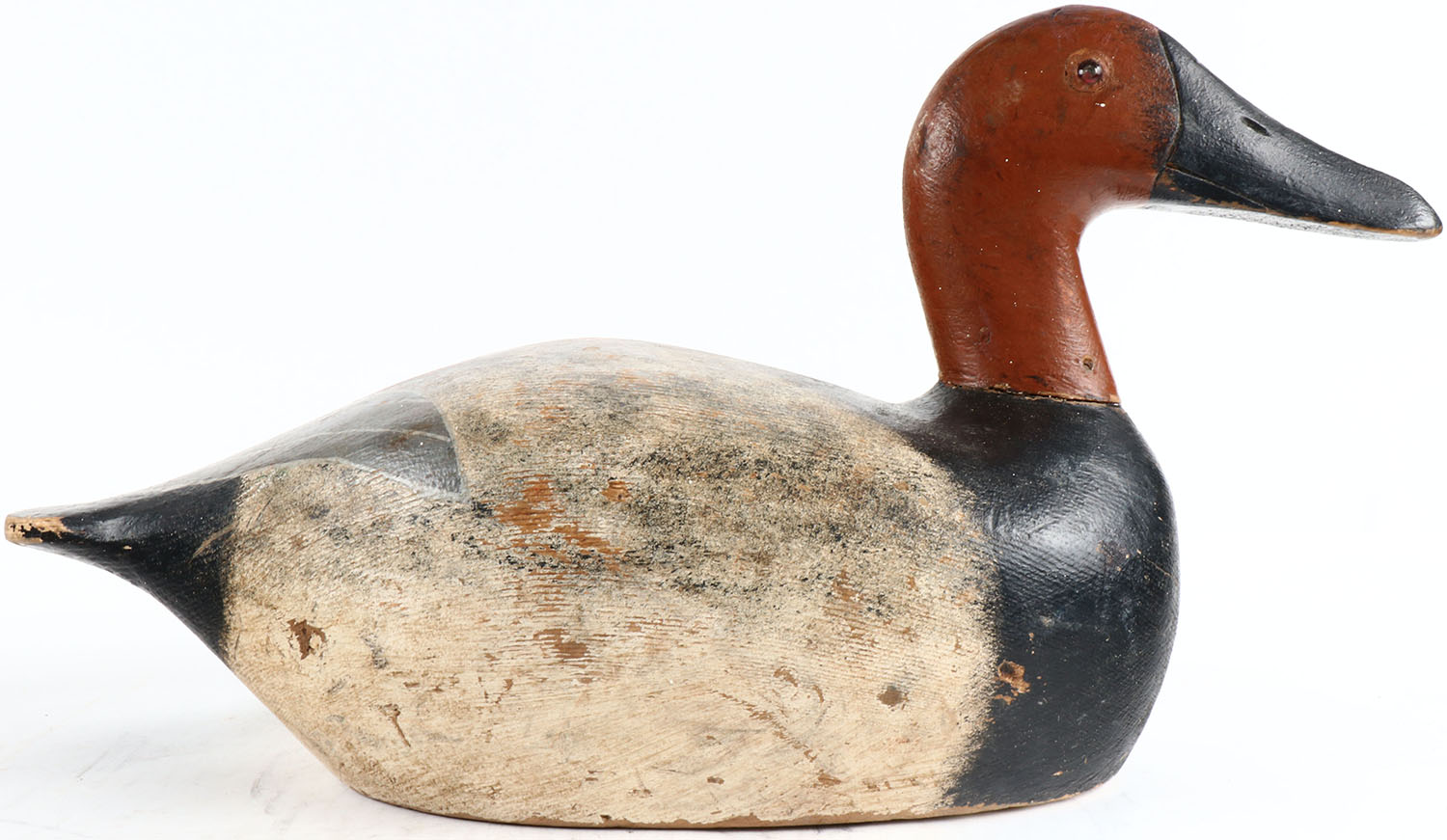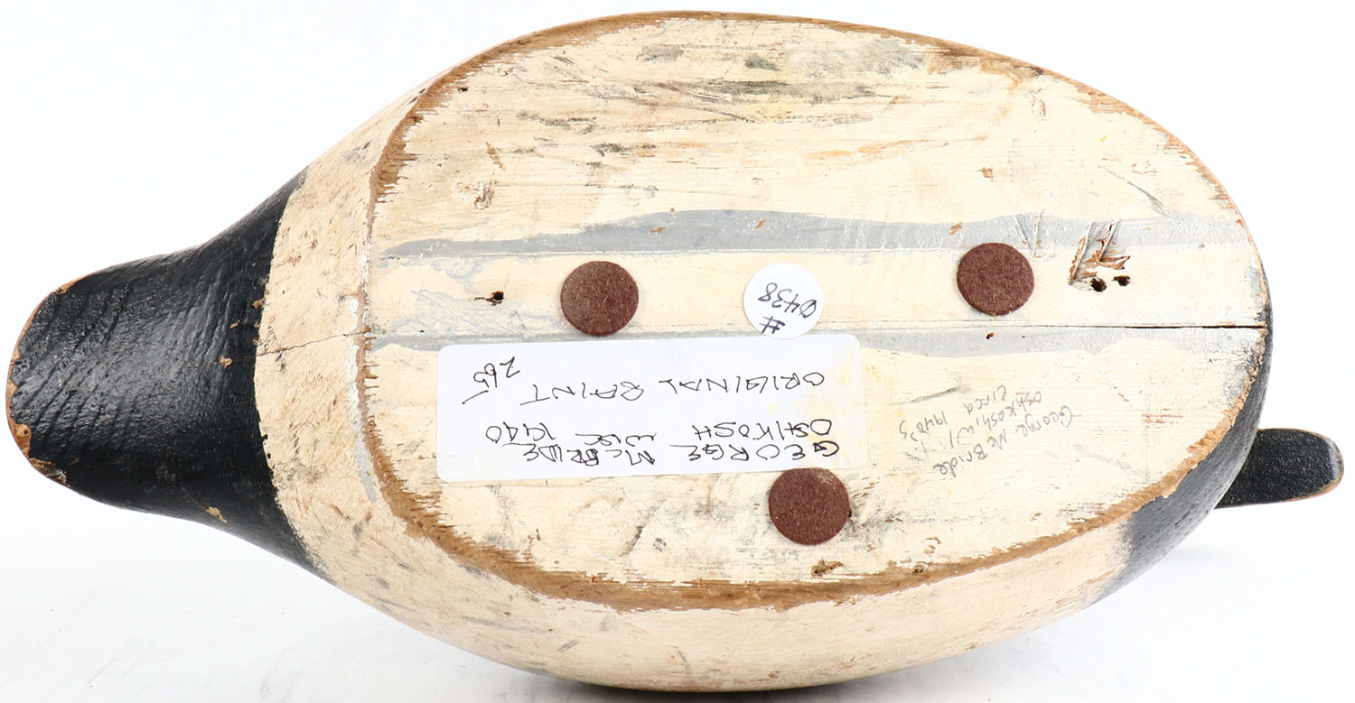 Canvasback Drake by George McBride Oshkosh WI, glass eyes, solid wood, original paint. Grade: Excellent - Value: 80 to 200