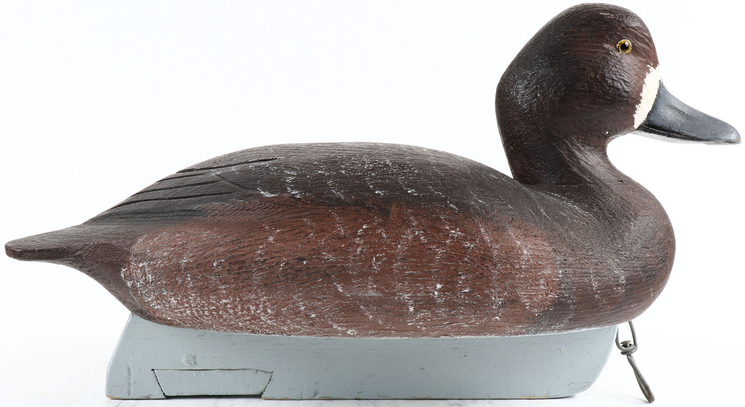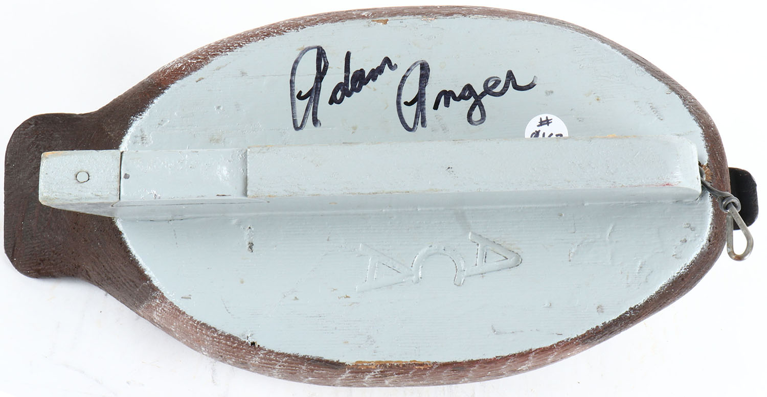 Bluebill Hen by Adam Anger, Tecumseh, Ontario Canada, glass eyes, solid wood, original paint, structurally excellent, branded ACA on bottom. Grade: Excellent ++ - Value: 70 to 200