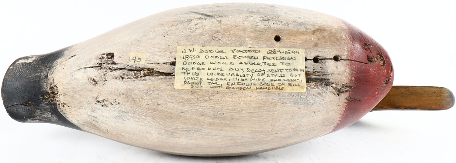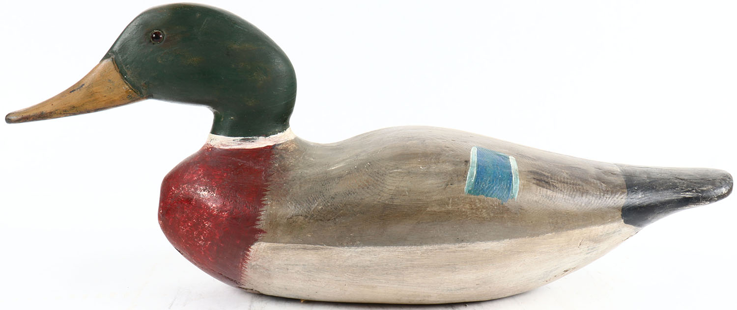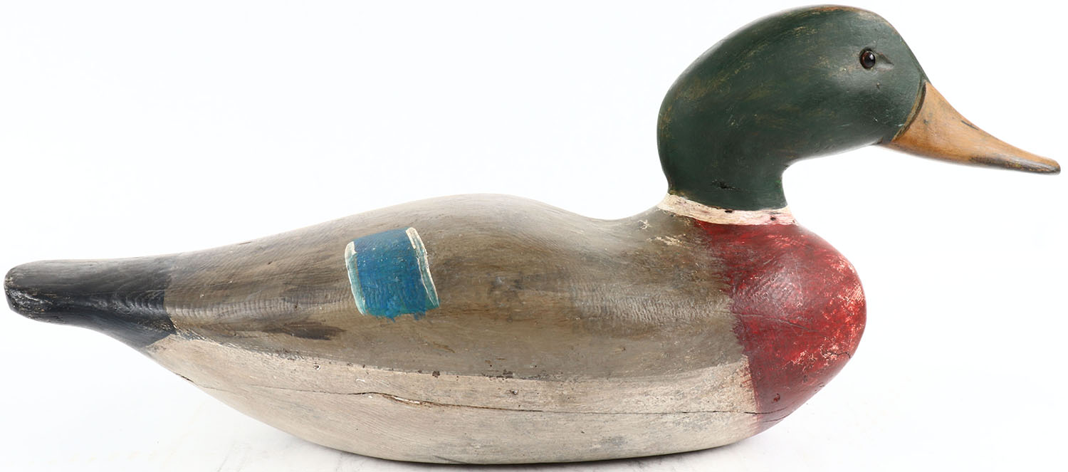 Mallard Drake by J.N. Dodge Factory 1844-1894, glass eyes, solid wood, original paint, structurally excellent. Grade: Excellent - Value: 100 to 400