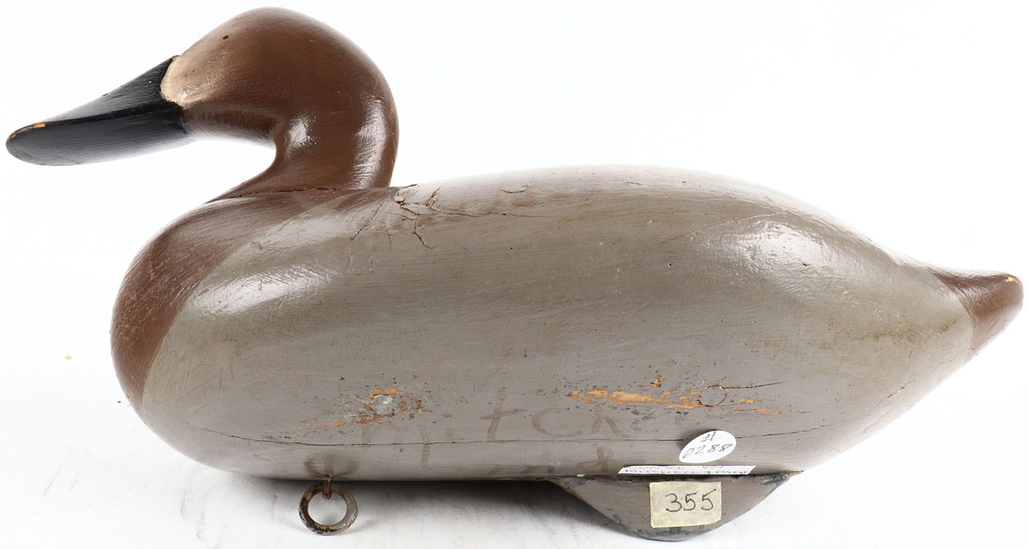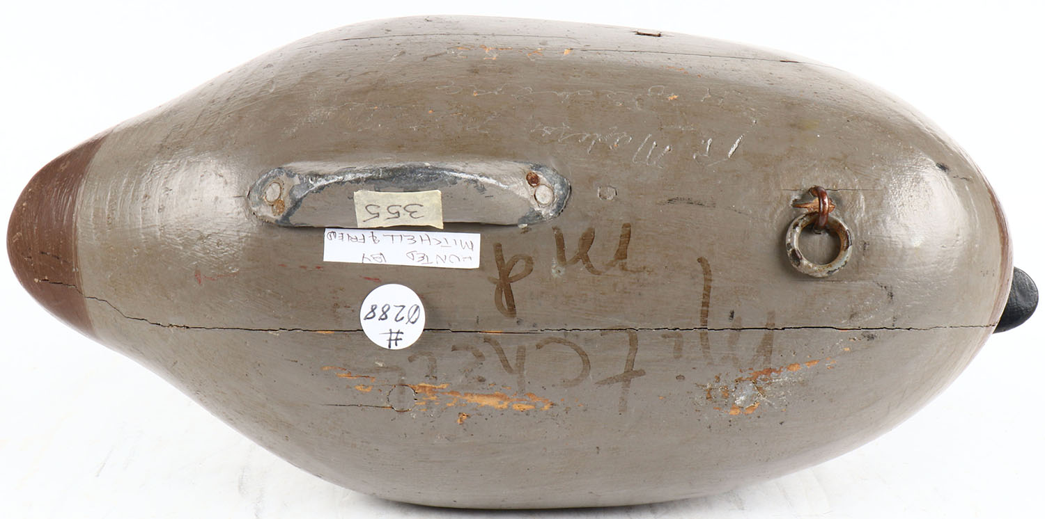Canvasback Hen by R. Madison Mitchell, Havre De Grace MD, painted eyes, solid wood, original paint, signed & carved on bottom, structurally excellent. Grade: Excellent ++ - Value: 100 to 300