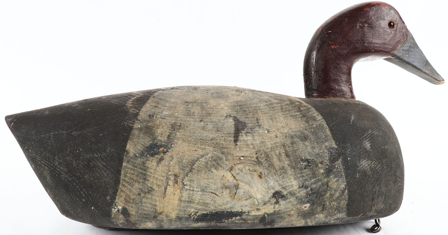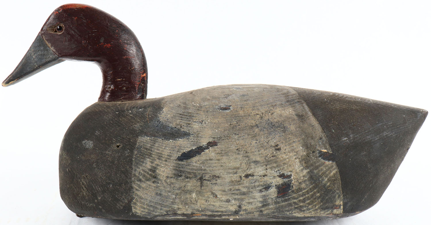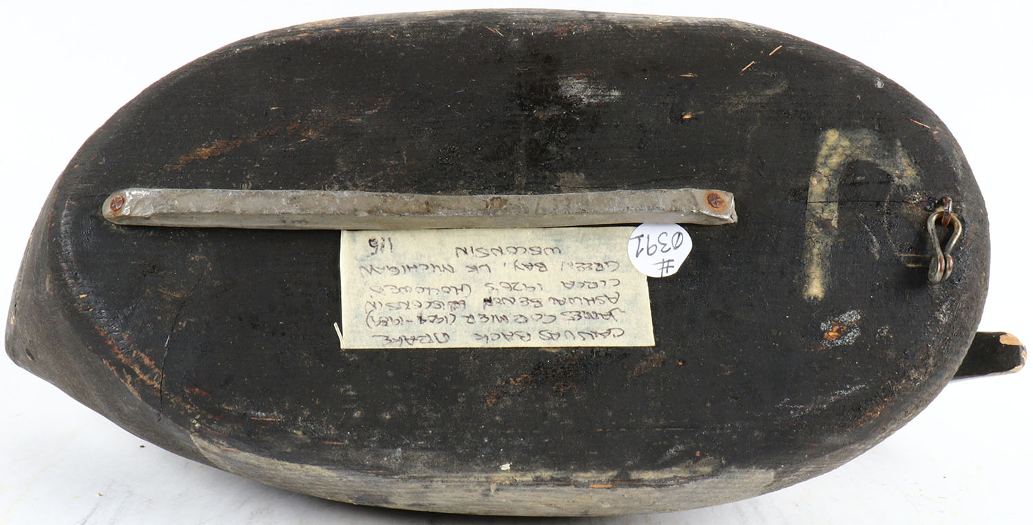 Canvasback Drake by James Coemier, Lake Michigan near Green Bay Wisconsin, glass eyes, hollow wood, original paint, structurally excellent, signed on bottom. Grade: Excellent - Value: 40 to 100