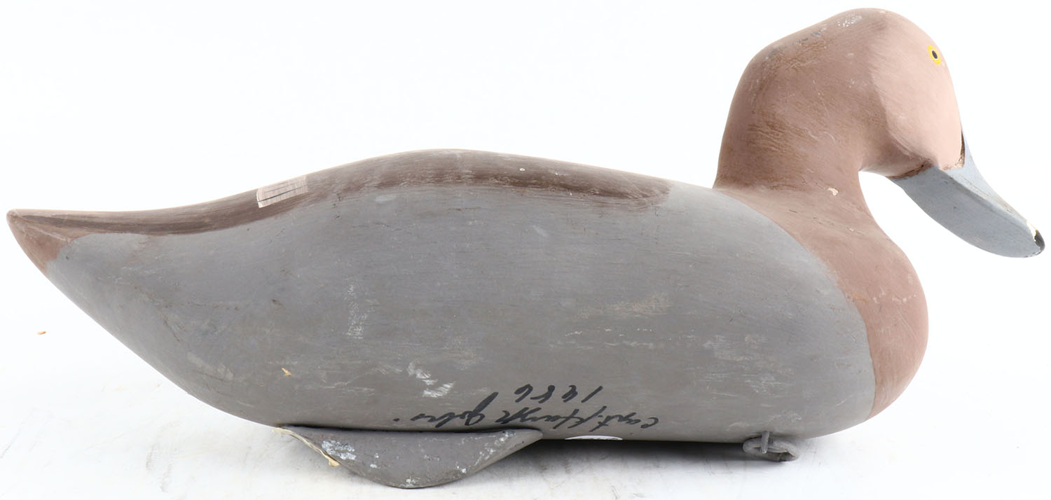 Bluebill Hen by Capt. Harry R. Jobes, Havre de Grace, MD, painted eyes, solid wood, structurally excellent, signed on bottom, original paint. Grade: MINT - Value: 26 to 150