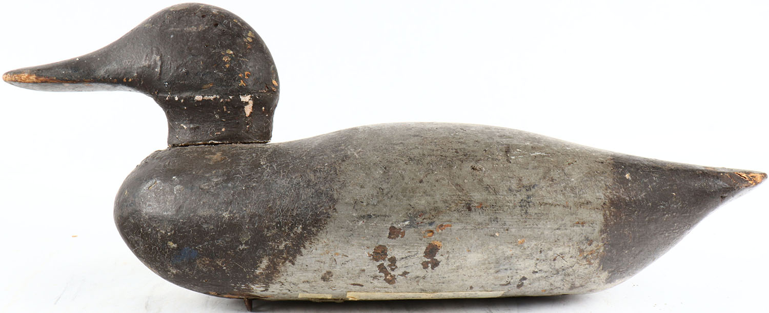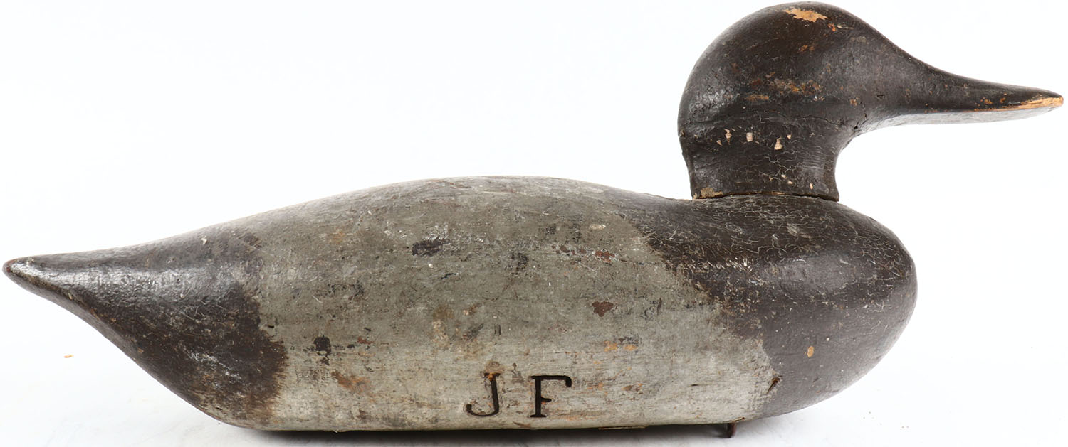 Redhead Drake by unknown, no eyes, solid wood, branded JF on bottom, original paint. Grade: Very Good ++ - Value: 30 to 200