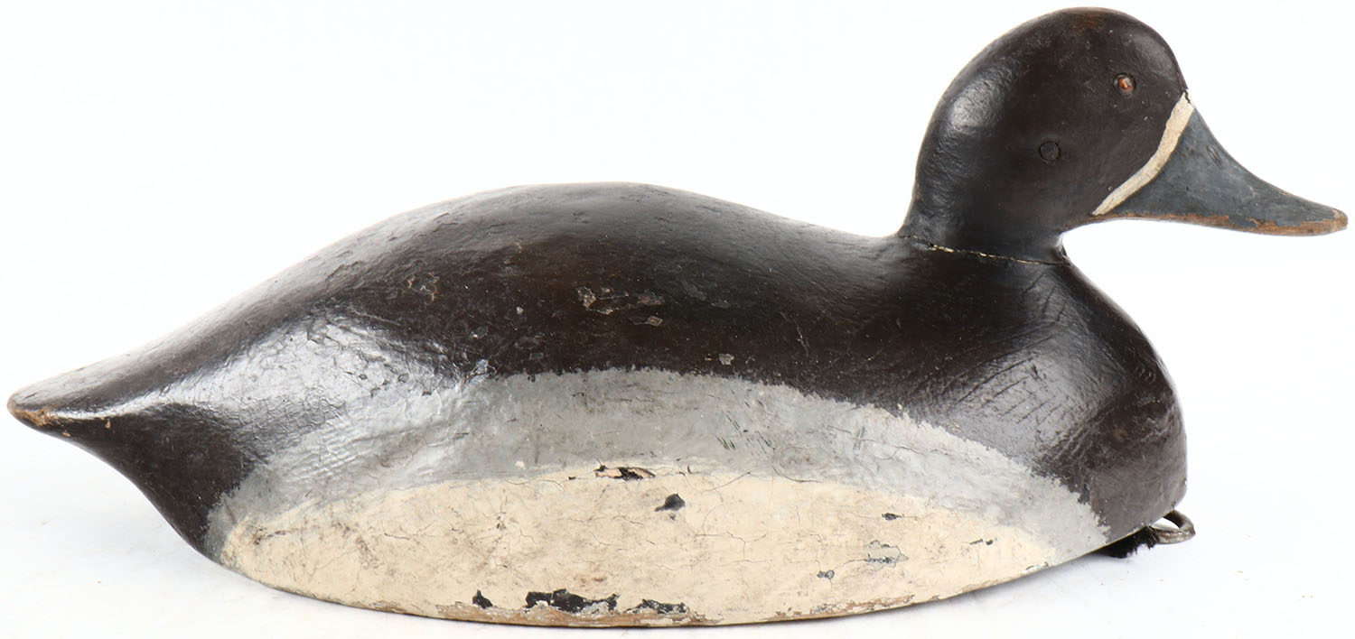 Bluebill Drake by unknown maker, Fox River WI, tack eyes, hollow wood, structurally excellent, signed on bottom, original paint. Grade: Very Good ++ - Value: 30 to 200