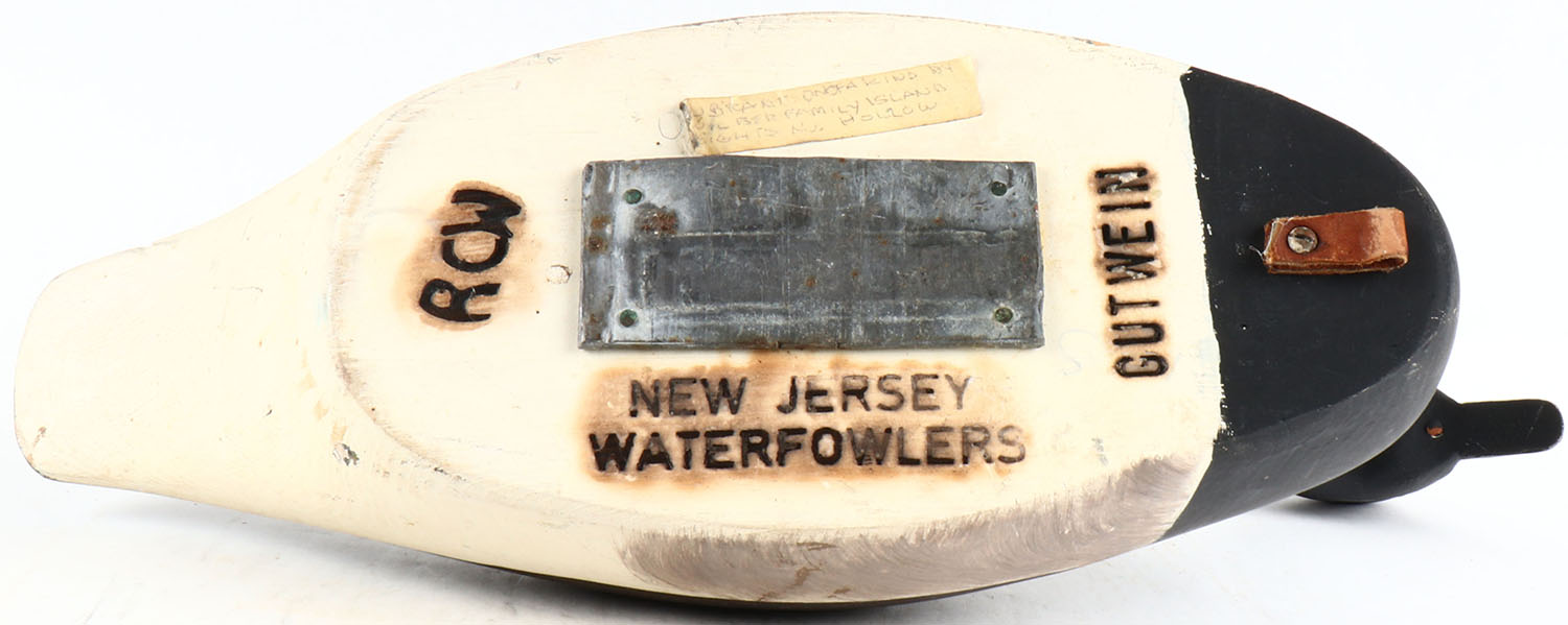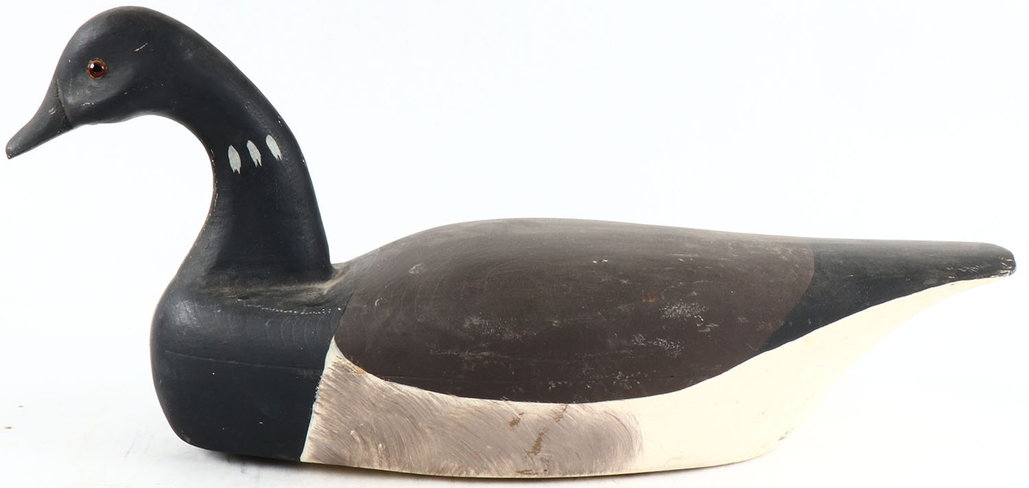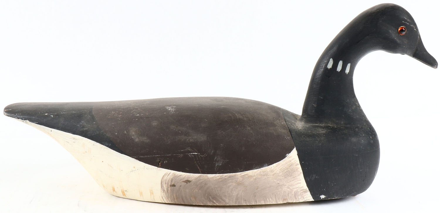 Atlantic Brant by unknown, glass eyes, hollow wood, original paint, structurally excellent, branded on bottom by NEW JERSEY WILDFOWLERS. Grade: MINT - Value: 20 to 80