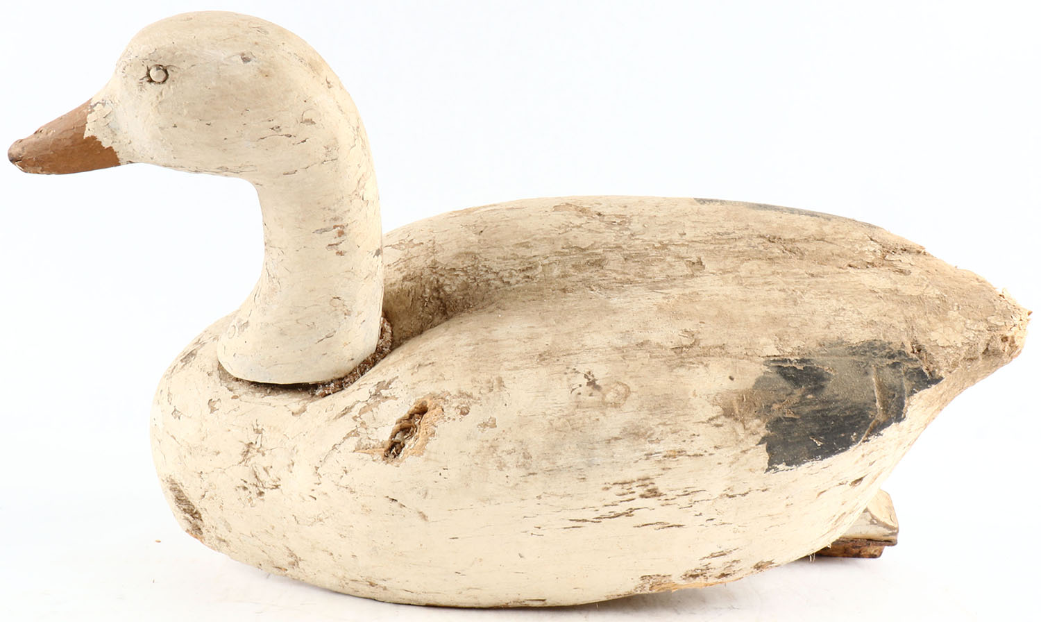 Snow Goose by unknown maker Herters?, glass eyes, solid balsa wood, original paint with typical wear. Grade: Very Good + - Value: 20 to 100