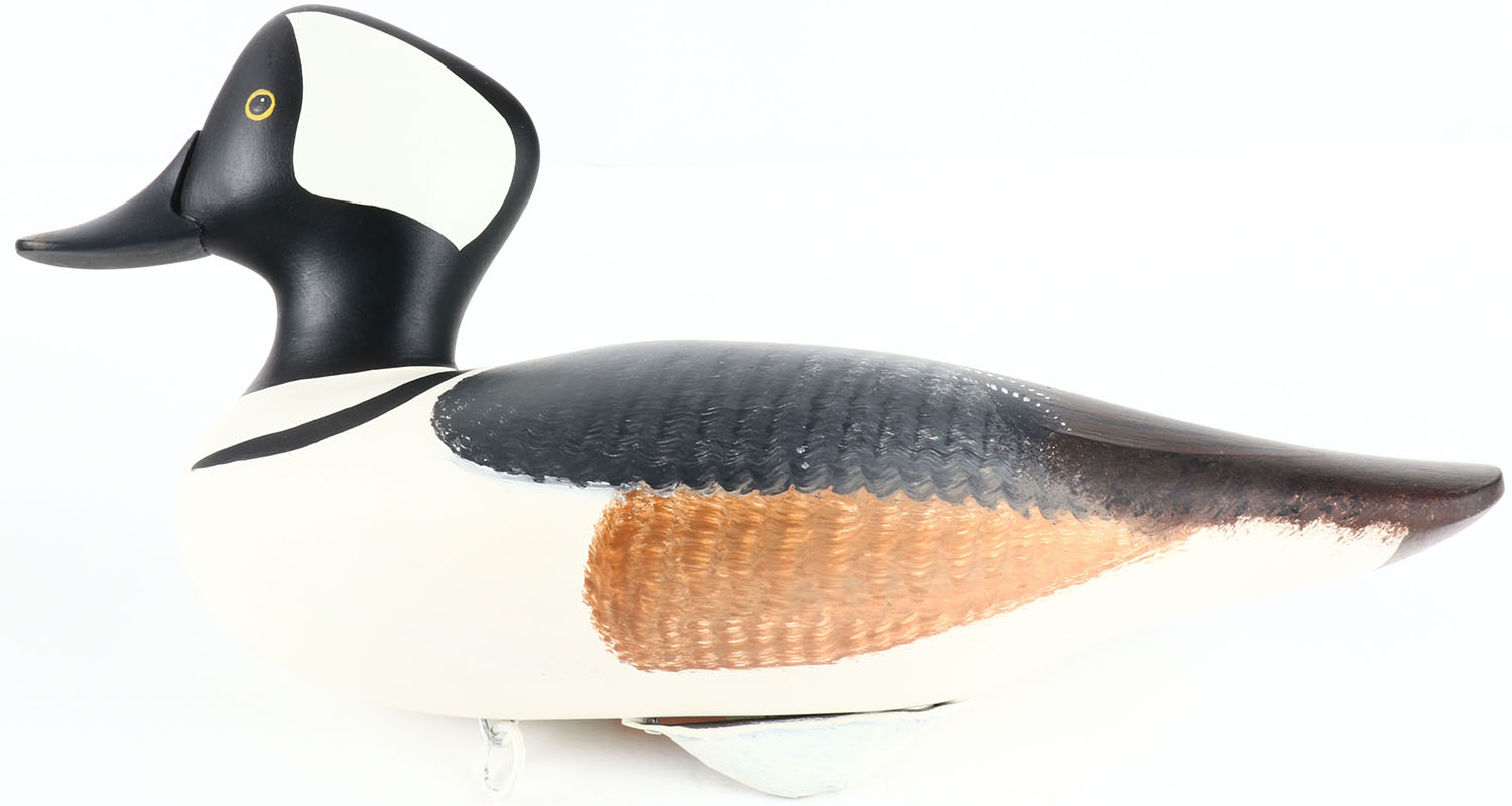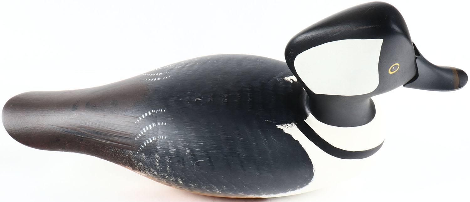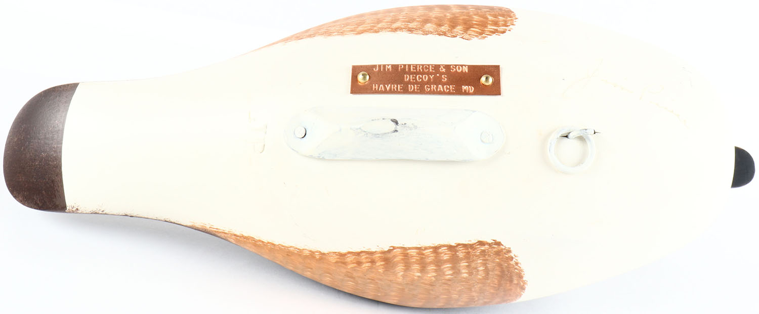 Bufflehead Drake by Jim Pierce & Son Decoys, Havre De Grace MD. Painted eyes, solid wood, original paint, structurally excellent, signed and branded on bottom. Grade: MINT - Value: 50 to 150