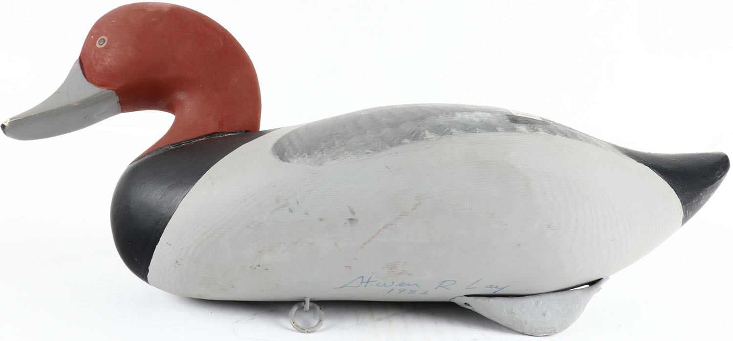 Redhead Drake by Steven R. Lay, painted eyes, solid wood, original paint, structurally excellent, signed on bottom. Grade: Excellent ++ - Value: 50 to 150