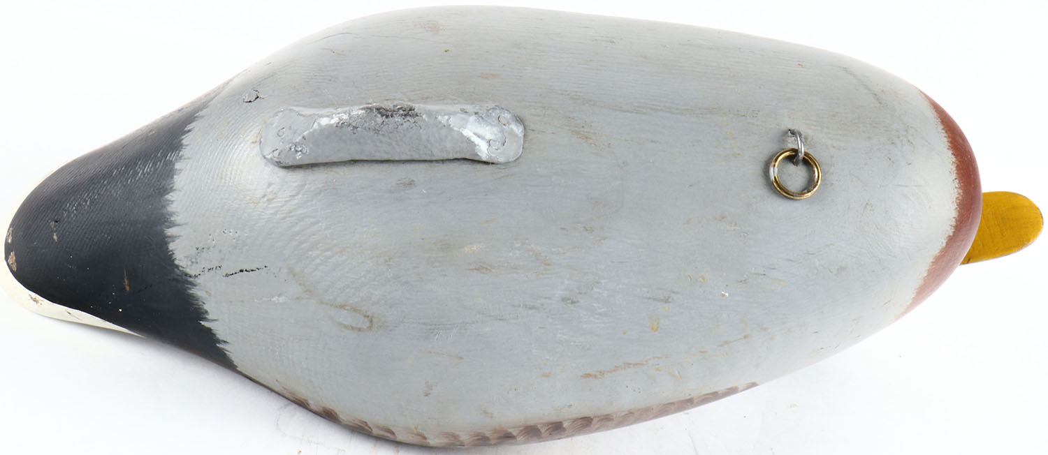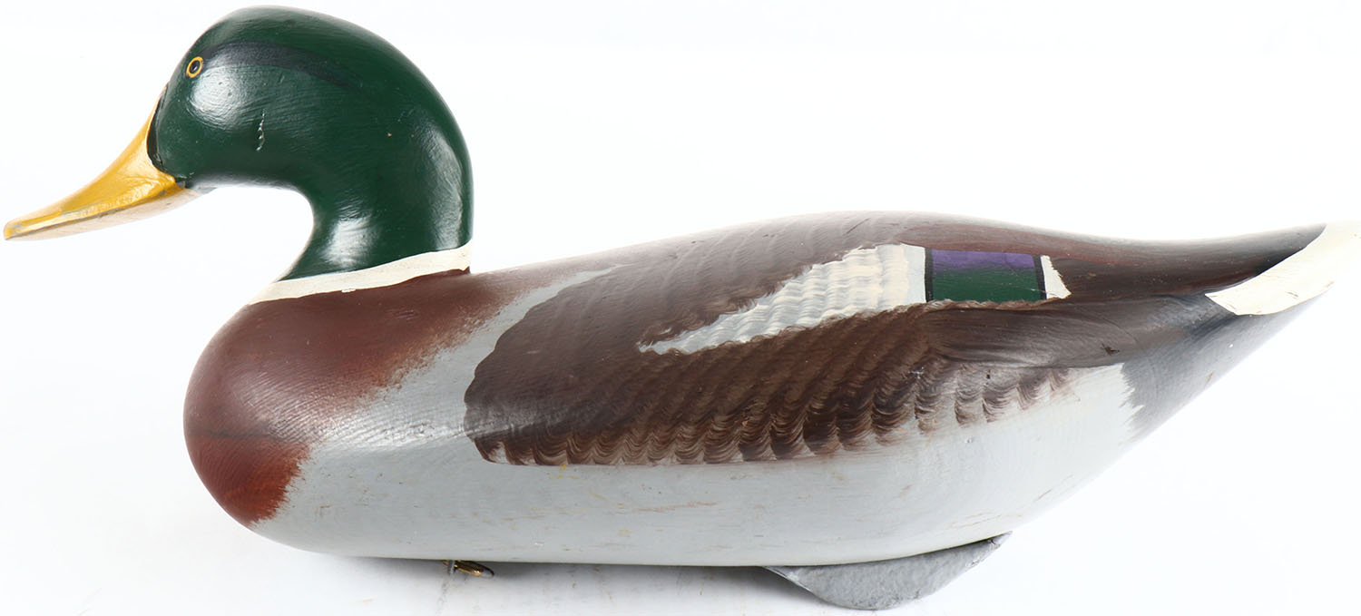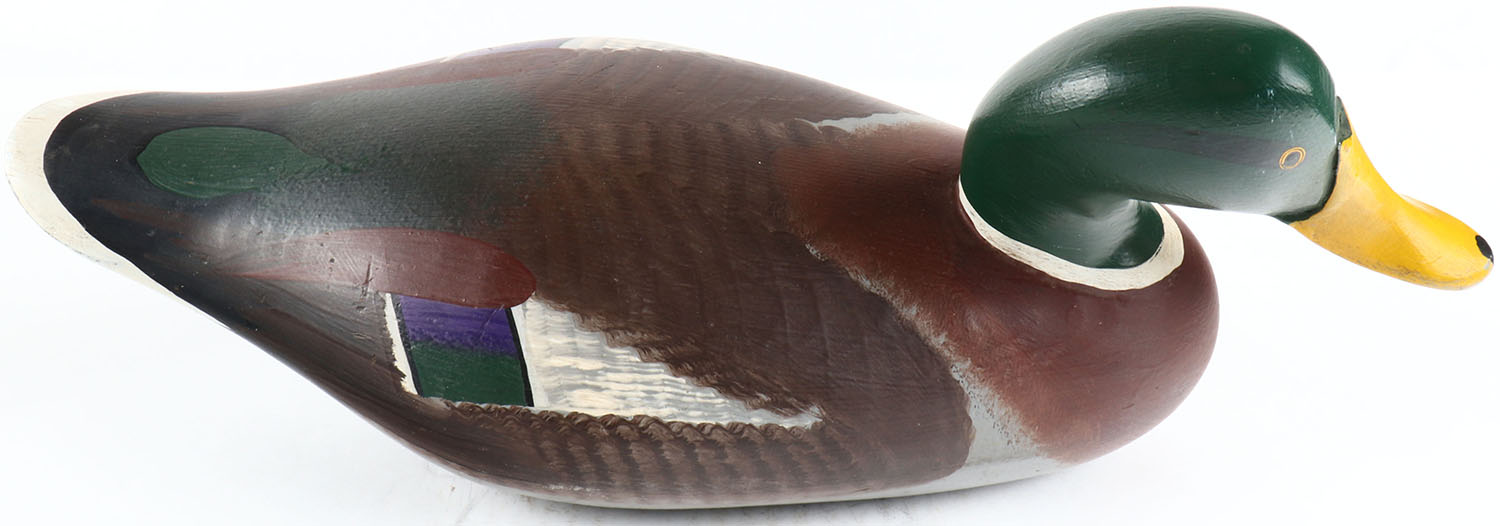Mallard Drake by unknown maker in MD, painted eyes, solid wood, repainted, structurally excellent. Grade: Excellent - Value: 50 to 100