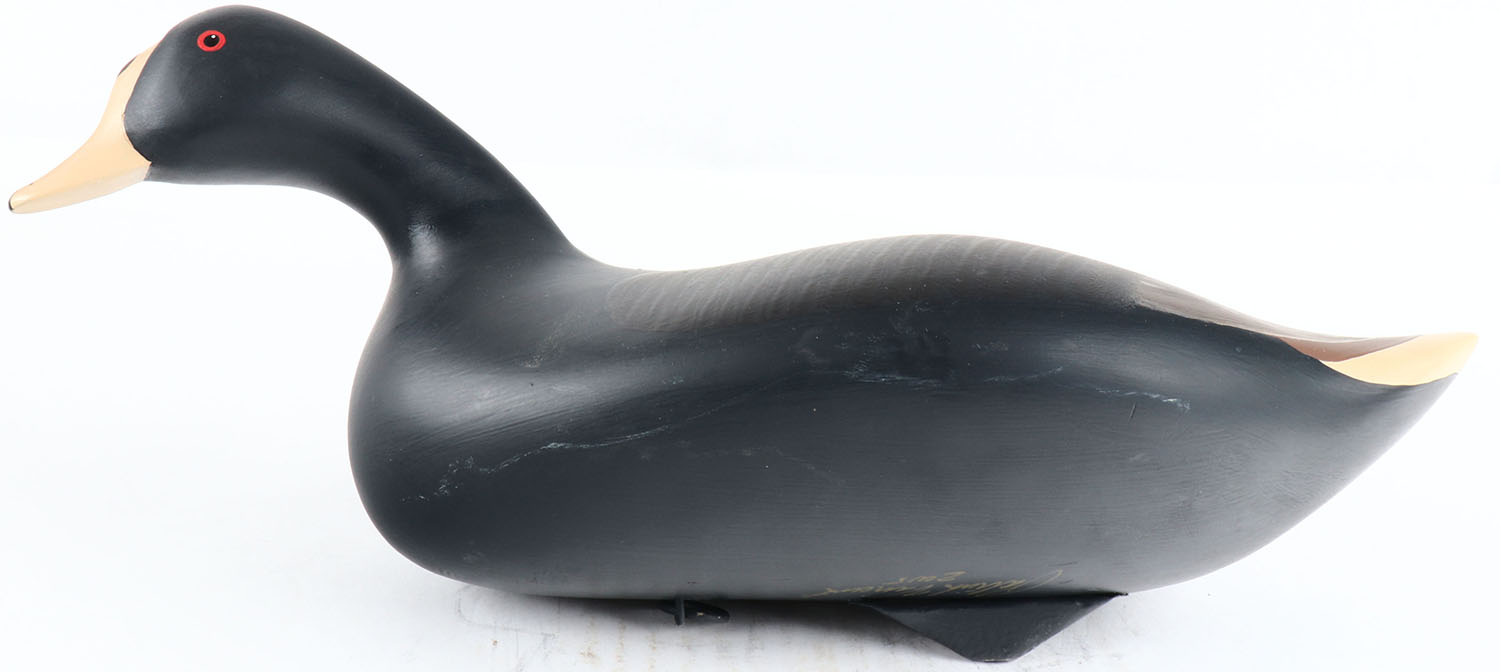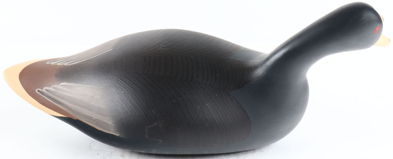Coot by Patrick ''Pat'' Vincent, Churchville, MD, painted eyes, solid wood, original paint, structurally excellent, signed on bottom. Grade: MINT - Value: 50 to 100
