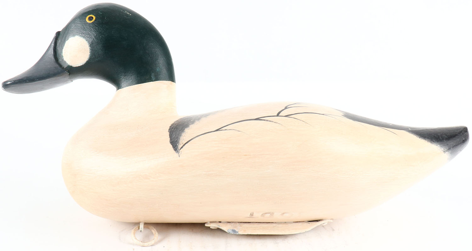 Goldeneye Drake by Bryon Bodt, Churchille MD, painted eyes, solid wood, original paint, structurally excellent, branded BODT on bottom. Grade: Excellent ++ - Value: 50 to 100