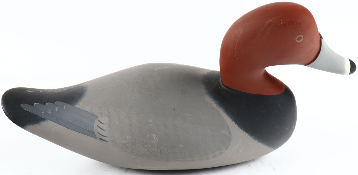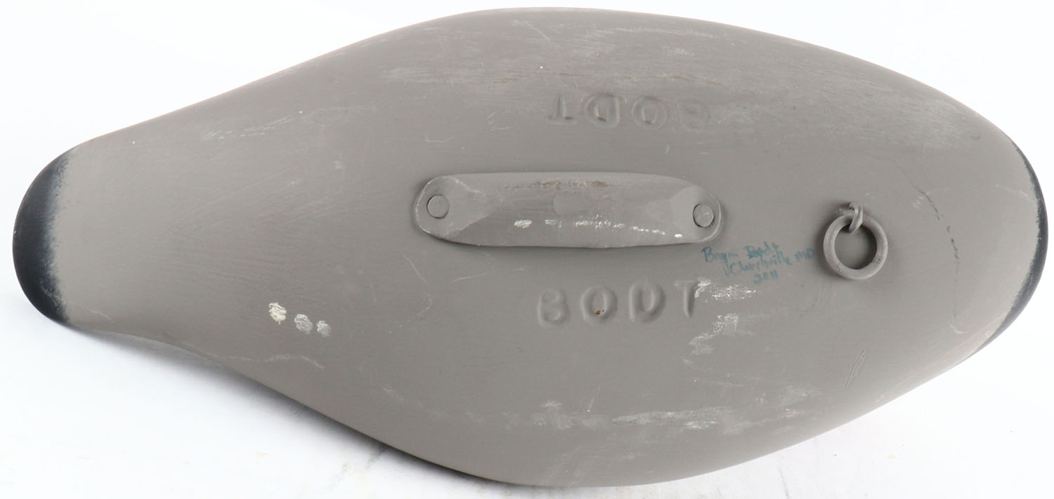 Redhead Drake by Bryon Bodt, Churchille MD, painted eyes, solid wood, original paint, structurally excellent, branded BODT on bottom and signed. Grade: Excellent ++ - Value: 50 to 100