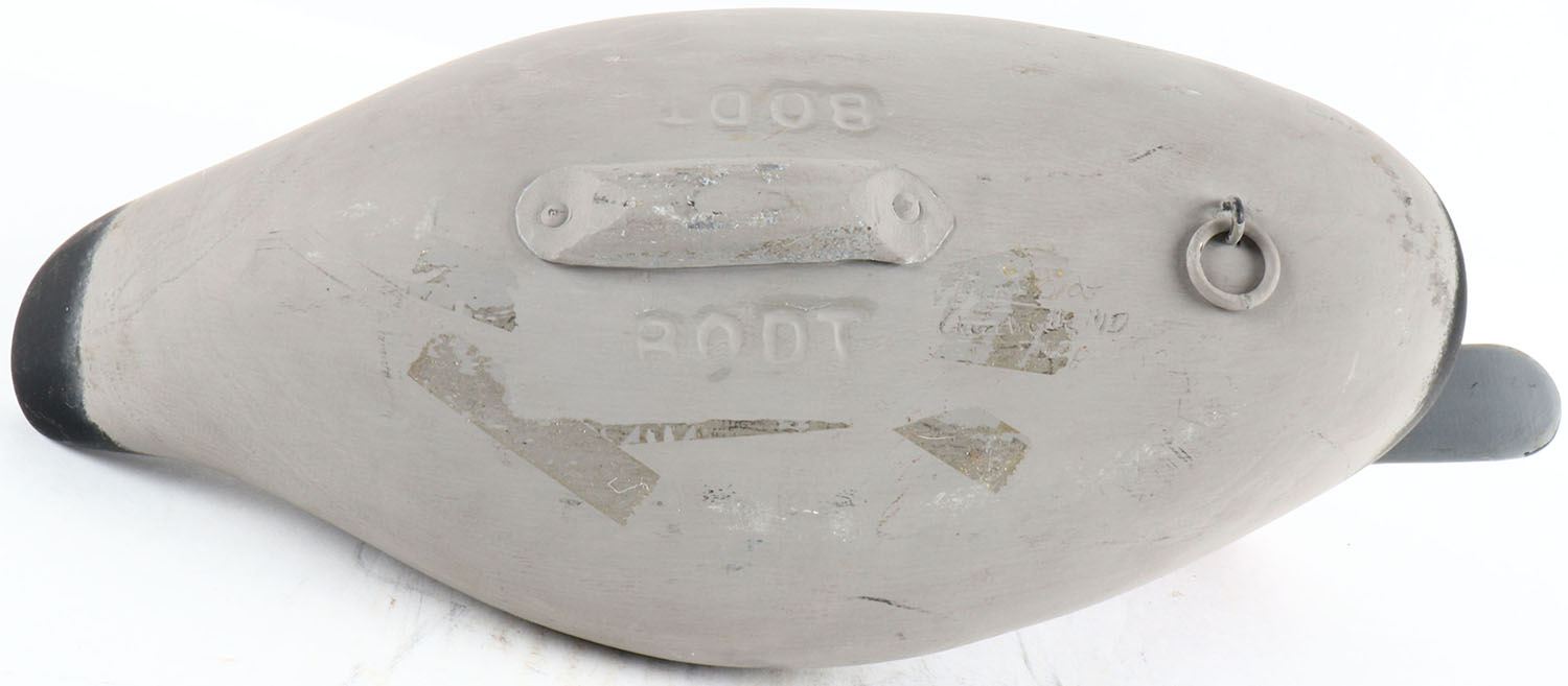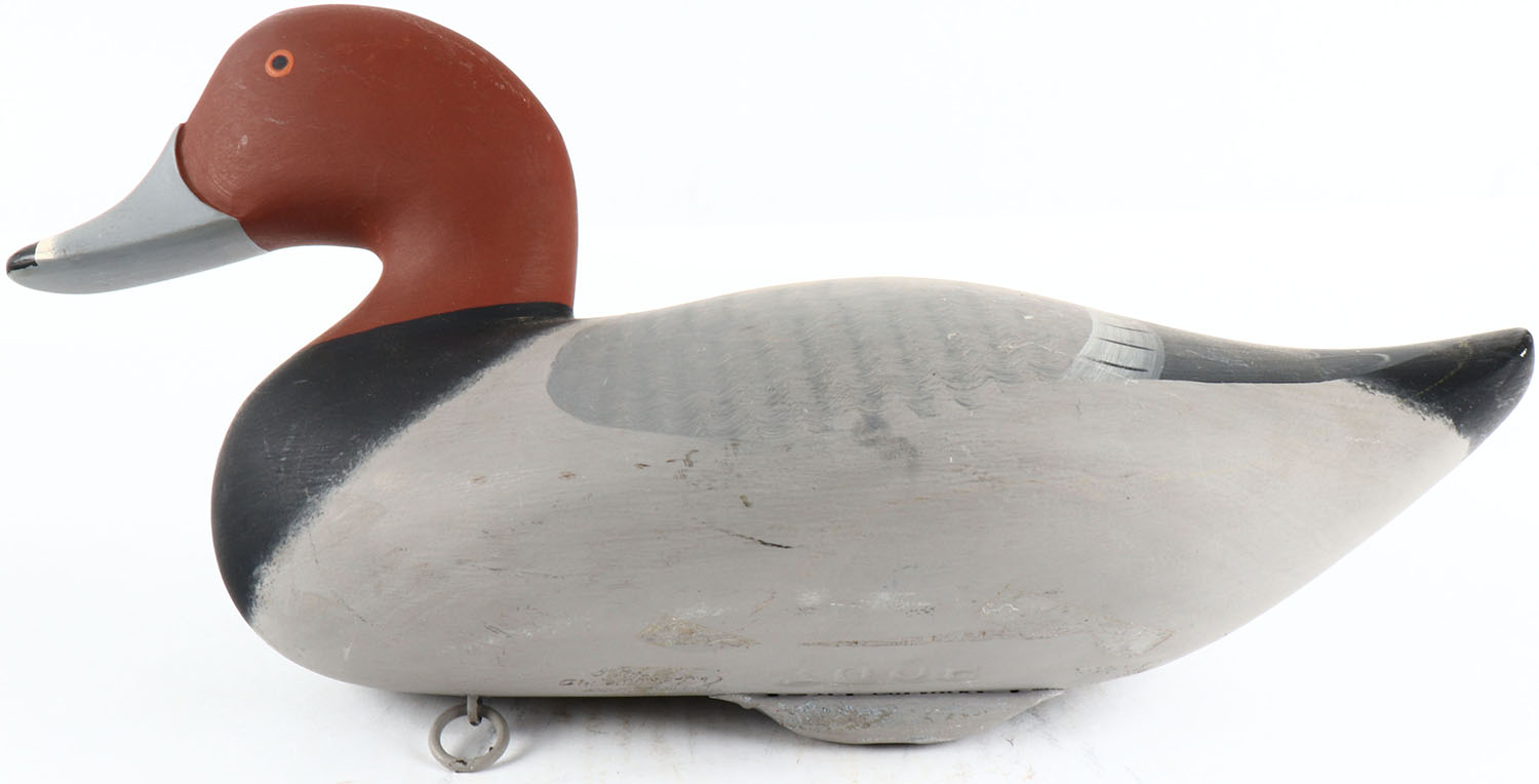 Redhead Drake by Bryon Bodt, Churchille MD, painted eyes, solid wood, original paint, structurally excellent, branded BODT on bottom and signed. Grade: Excellent + - Value: 50 to 100