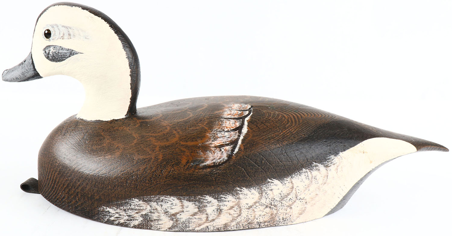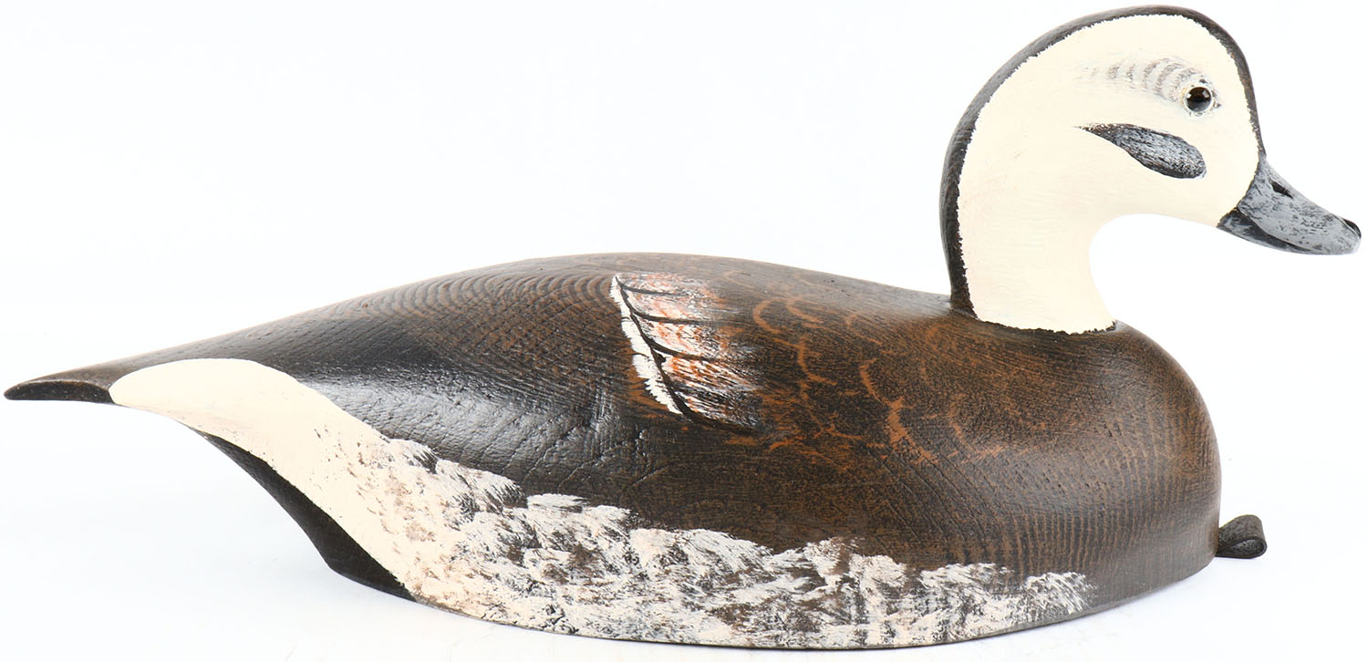 Old Squaw by Tom Martindale, Ontario, Canada, glass eyes, solid wood, original paint, structurally excellent, branded TM on bottom and signed. Grade: MINT - Value: 50 to 100