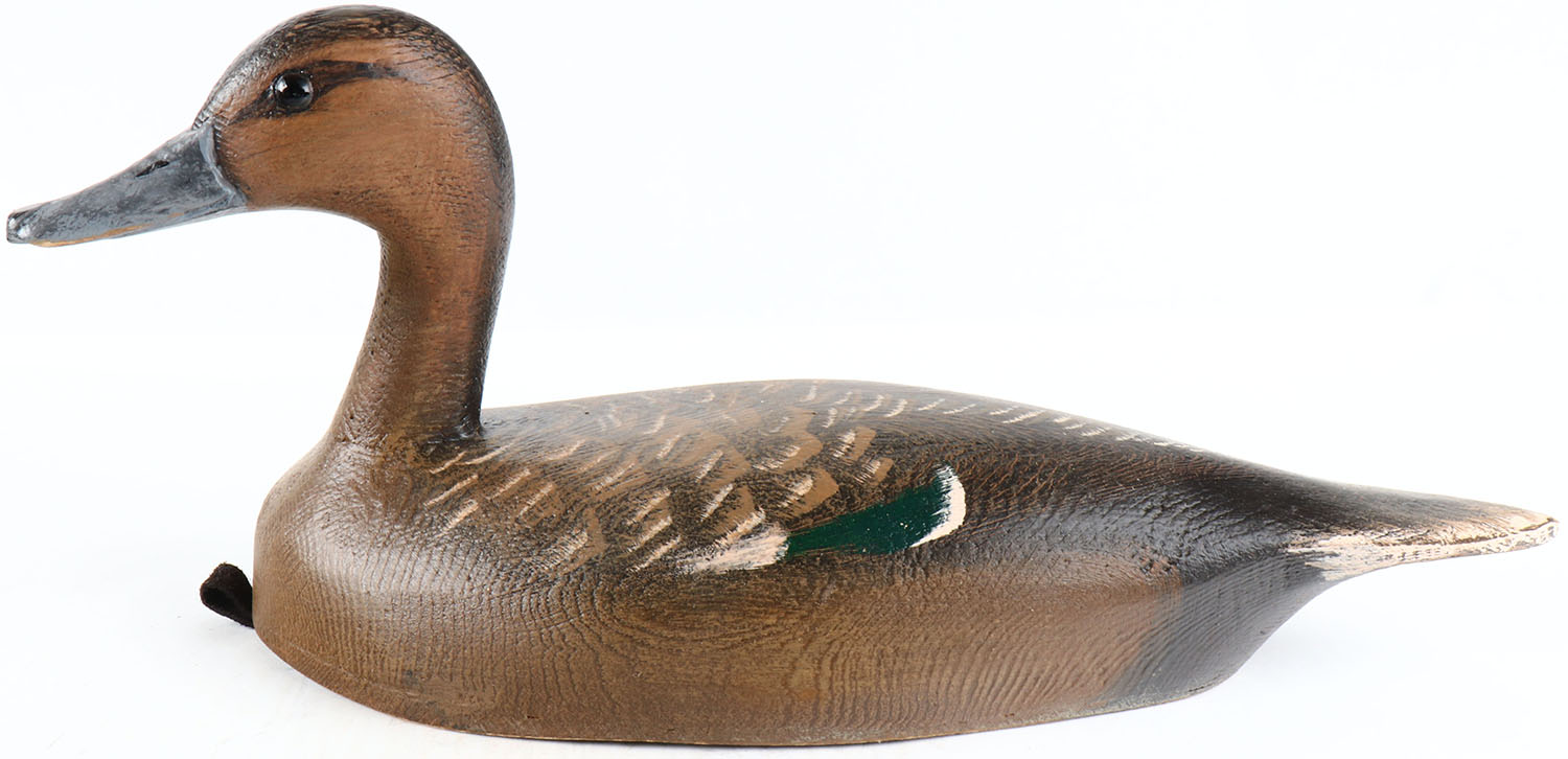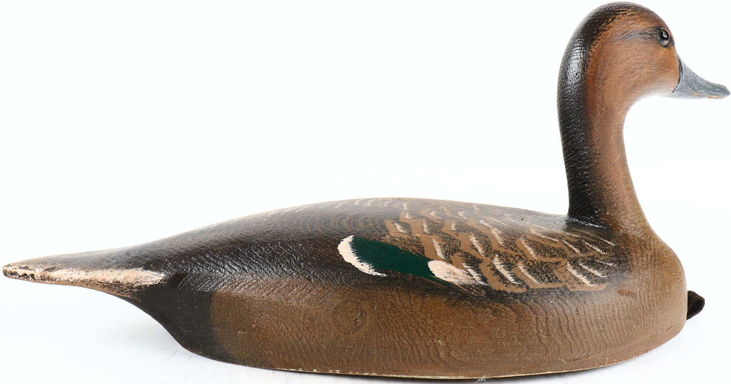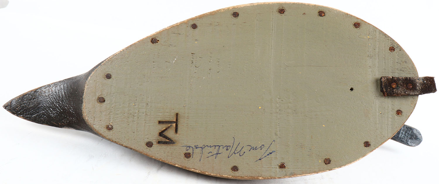Pintail Hen by Tom Martindale, Ontario, Canada, glass eyes, hollow wood, original paint, structurally excellent, branded TM and signed on bottom. Grade: MINT - Value: 50 to 100