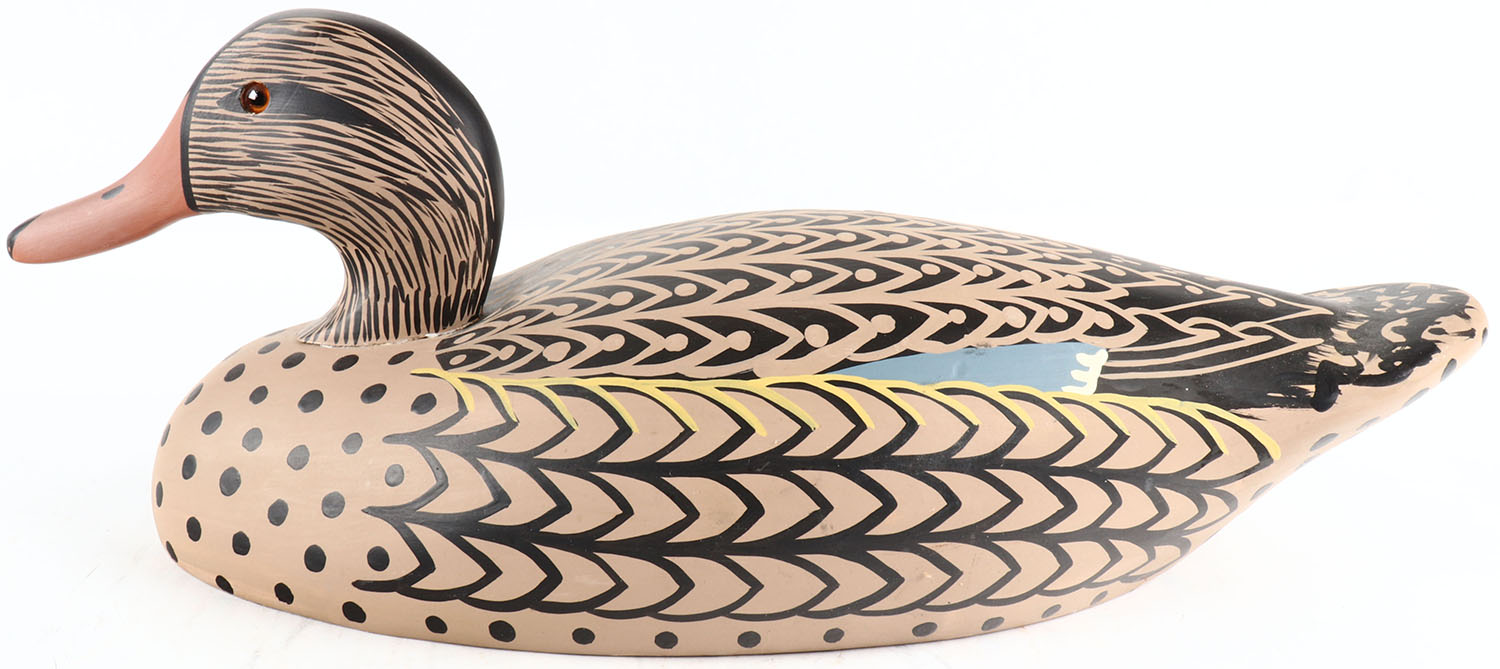 Mallard Hen by Charlotte Spencer Haver de Grace, MD, glass eyes, solid wood, original paint with nice feather detail, structurally excellent, signed on bottom. Grade: MINT + - Value: 40 to 80