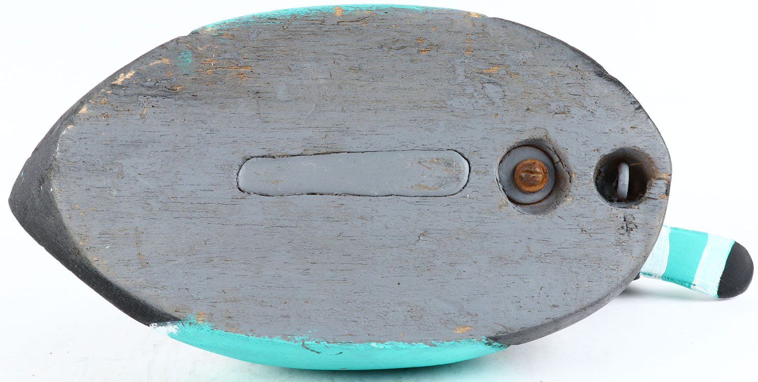 Ring Neck Drake by unknown maker, glass eyes, solid balsa wood, original paint, structurally excellent. Grade: Excellent - Value: 10 to 50