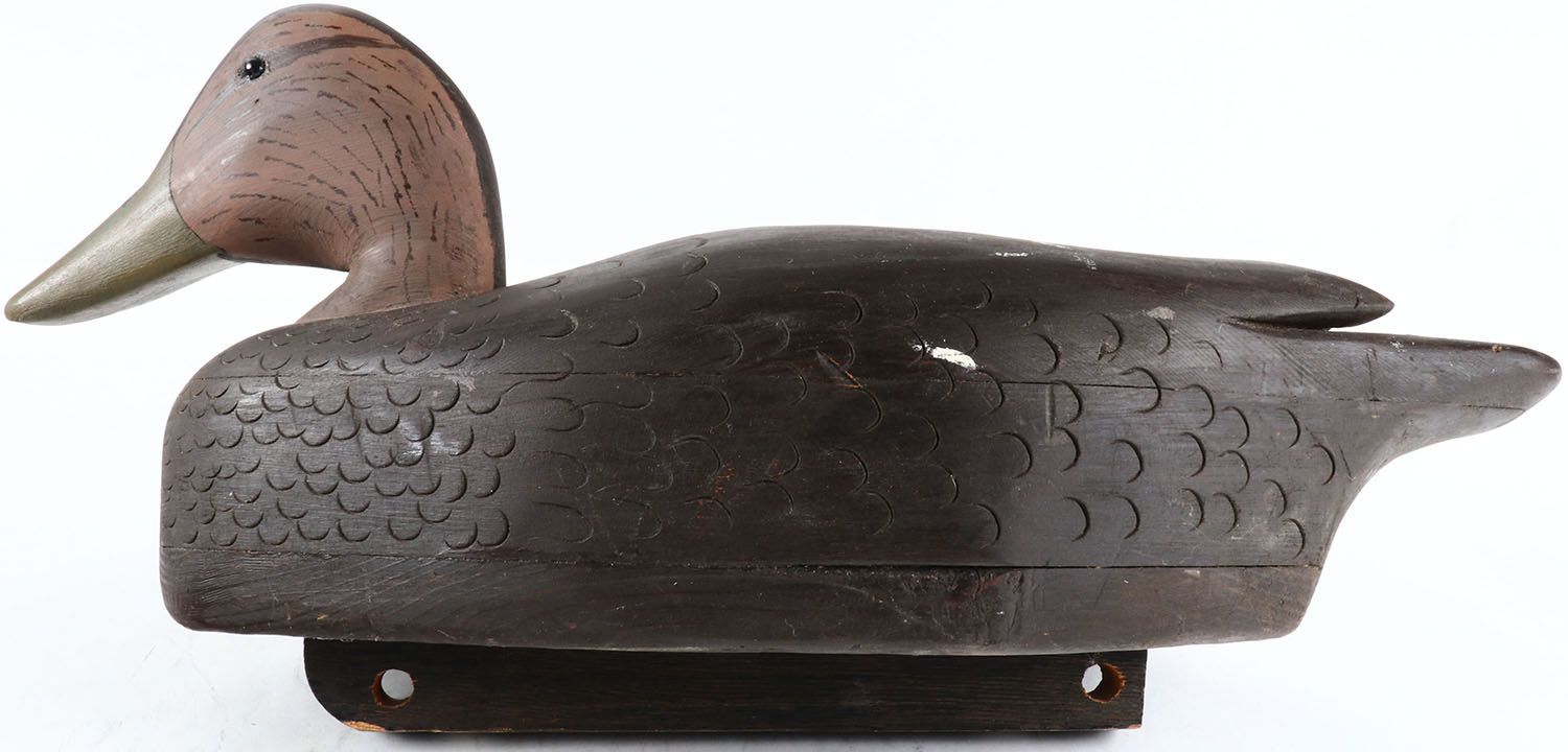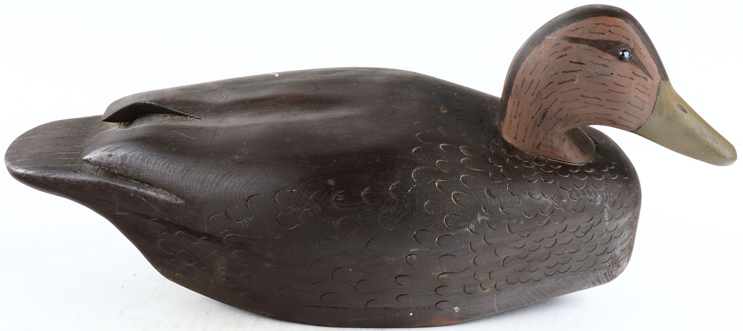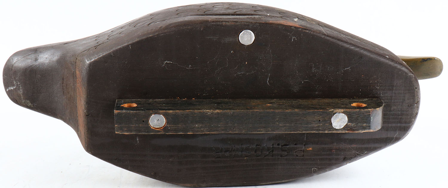 Black Duck by P.S. Kosnar, glass eyes, hollow wood, original paint, structurally excellent, branded P.S. KOSNAR on bottom. Grade: MINT - Value: 50 to 100