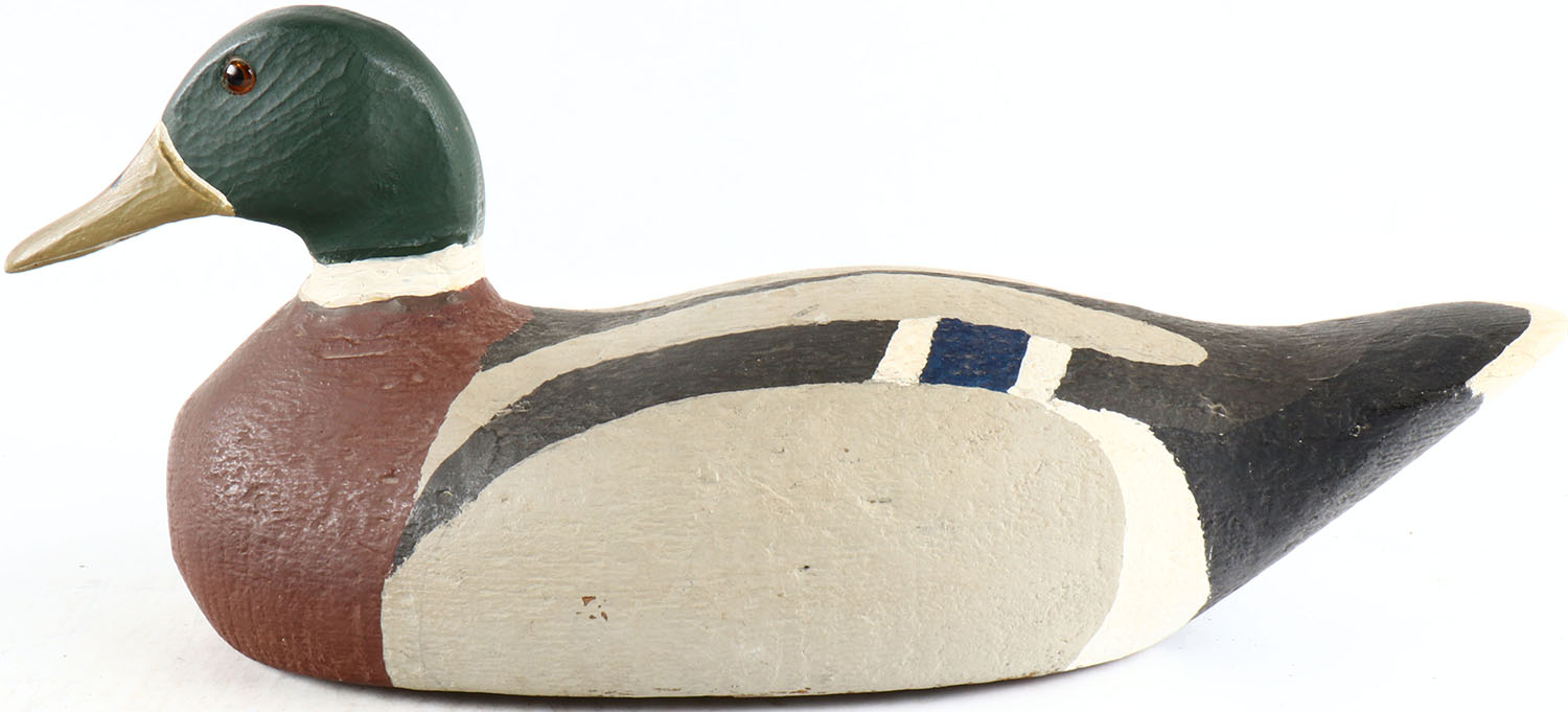 Mallard Hen by unknown maker, glass eyes, solid wood, original paint, structurally excellent. Grade: Excellent ++ - Value: 50 to 100