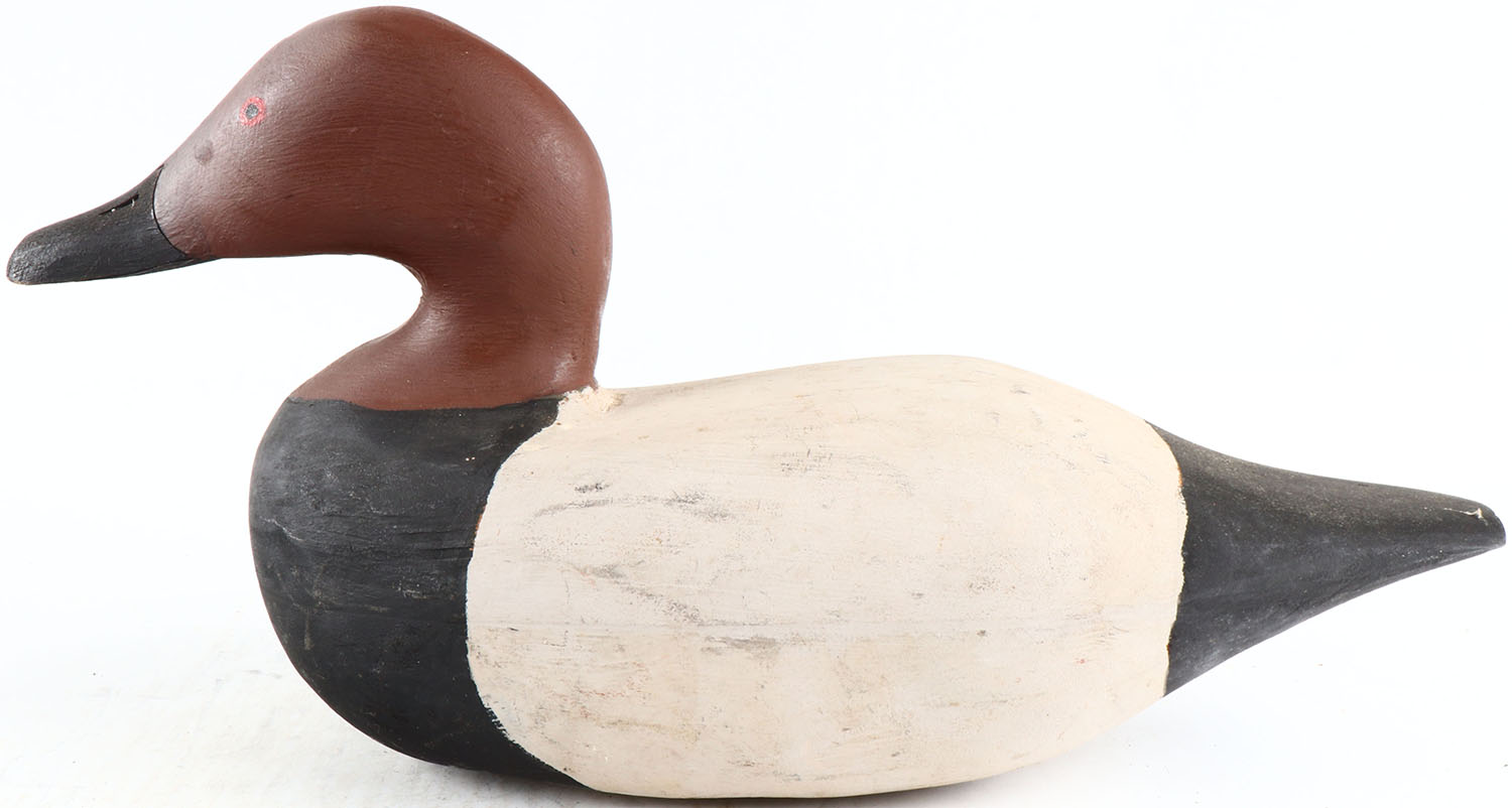 Canvasback Drake by unknown maker, painted eyes, hollow wood, original paint, structurally excellent. Grade: Excellent ++ - Value: 50 to 100