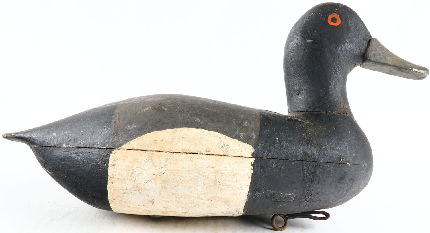 Bluebill Drake by unknown maker, painted eyes, hollow wood, original paint, structurally excellent. Grade: Very Good ++ - Value: 50 to 100