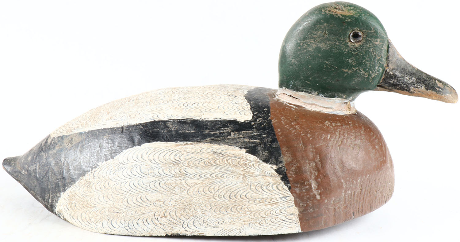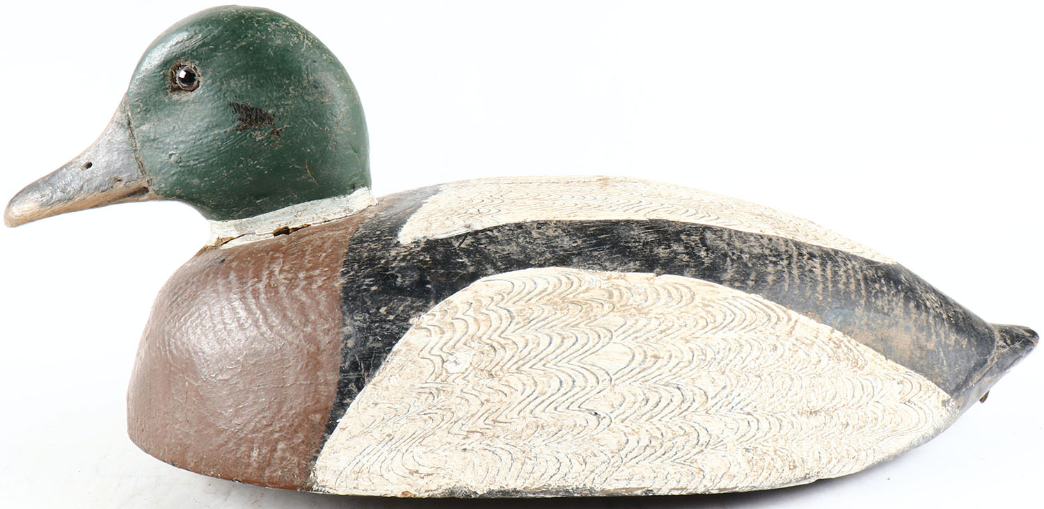 Mallard Drake by unknown maker, solid wood, original paint with comb painting, structurally excellent. Grade: Very Good ++ - Value: 50 to 100
