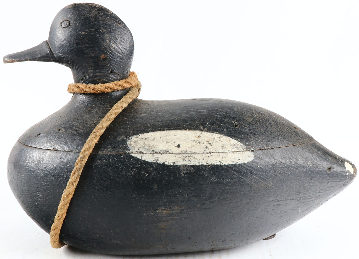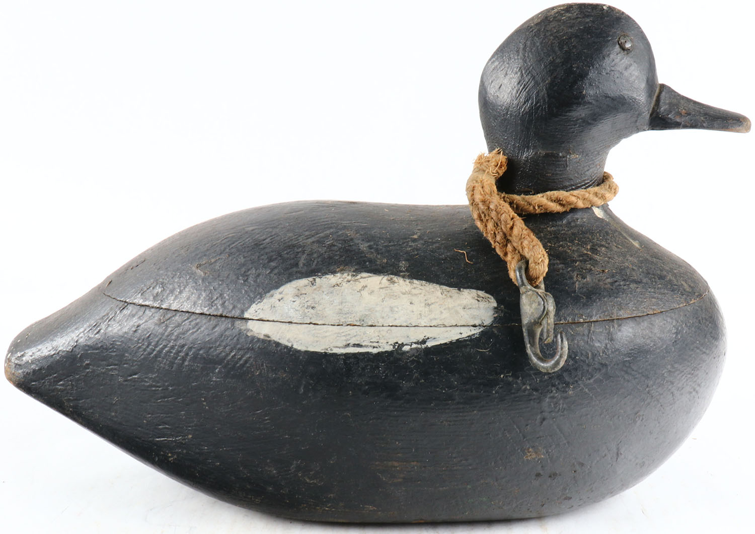 Bluebill Drake by unknown maker, tack eyes, hollow wood, original paint, structurally excellent. Grade: Very Good ++ - Value: 50 to 100