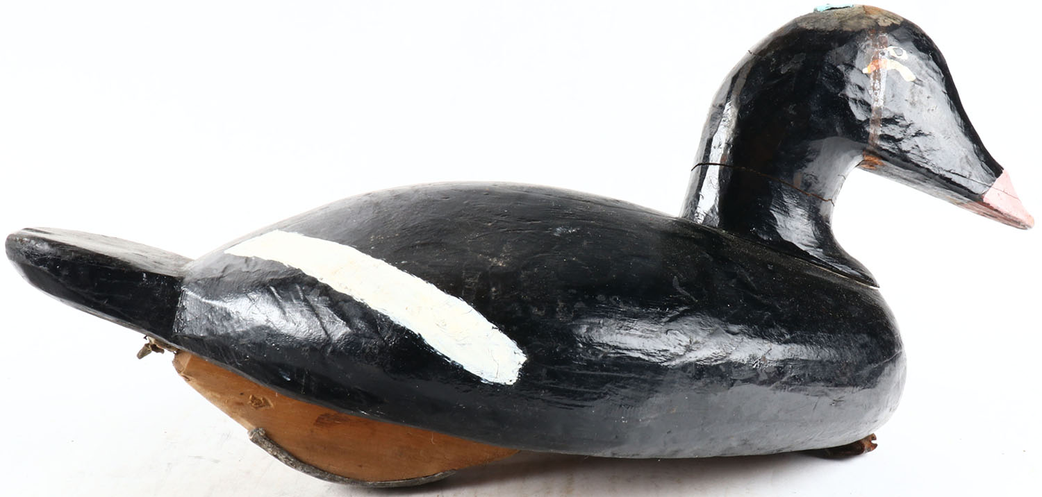 Scoter by unknown maker, painted eyes, solid wood, original paint, structurally excellent. Grade: Very Good ++ - Value: 50 to 100