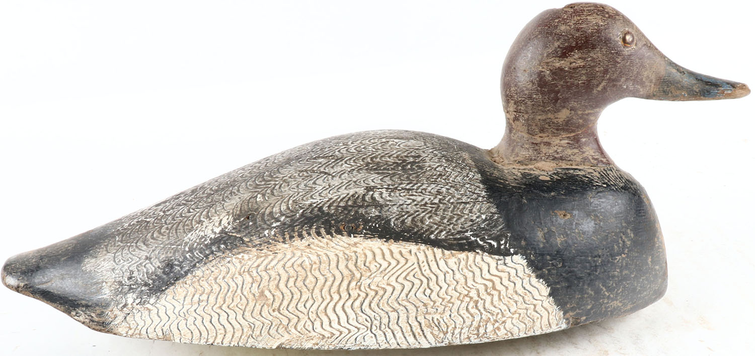 Redhead Drake by George Althouse ? Bloom Field Ont. Tack eyes, solid wood, original paint with comb painting, structurally excellent. Grade: Excellent - Value: 50 to 100