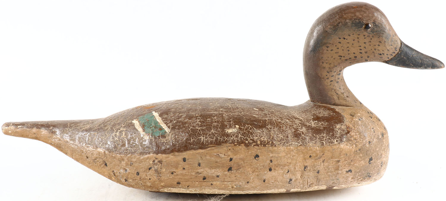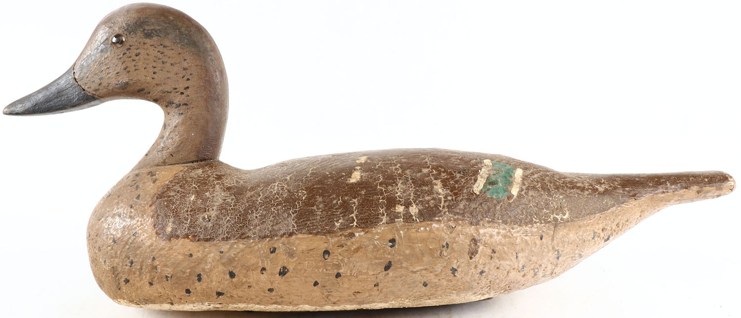 Pintail Hen by unknown maker, glass eyes, solid wood, original paint, structurally excellent. Grade: Excellent - Value: 50 to 100