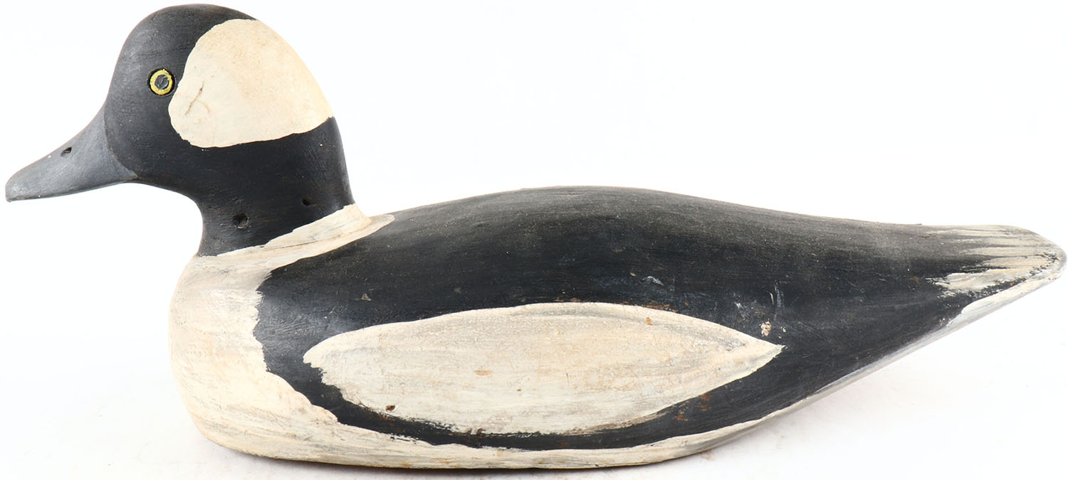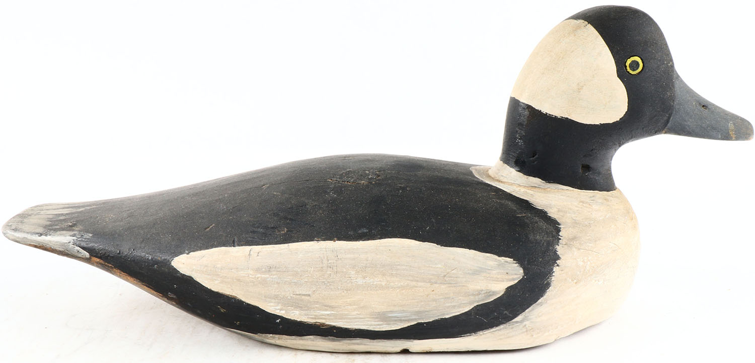 Bufflehead Drake by unknown maker, painted eyes, solid wood, original paint, structurally excellent. Grade: Excellent - Value: 50 to 100