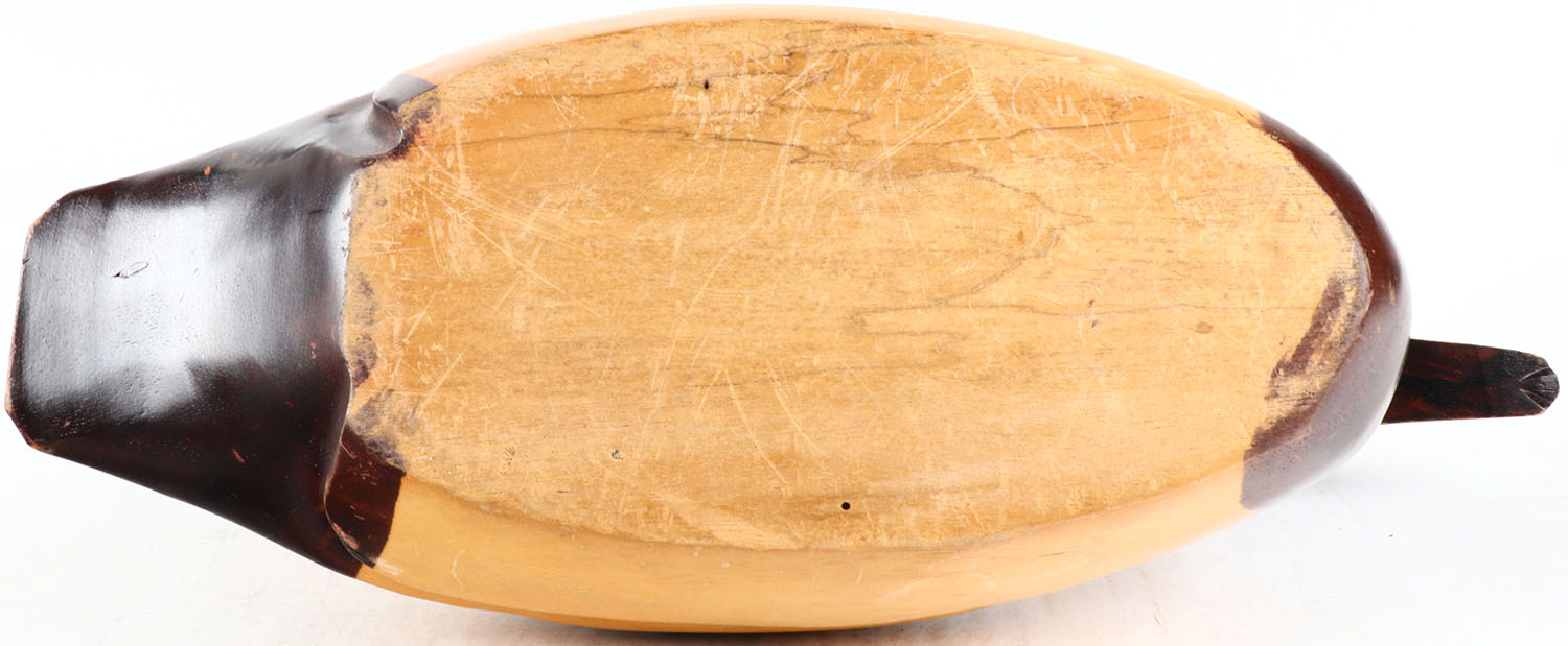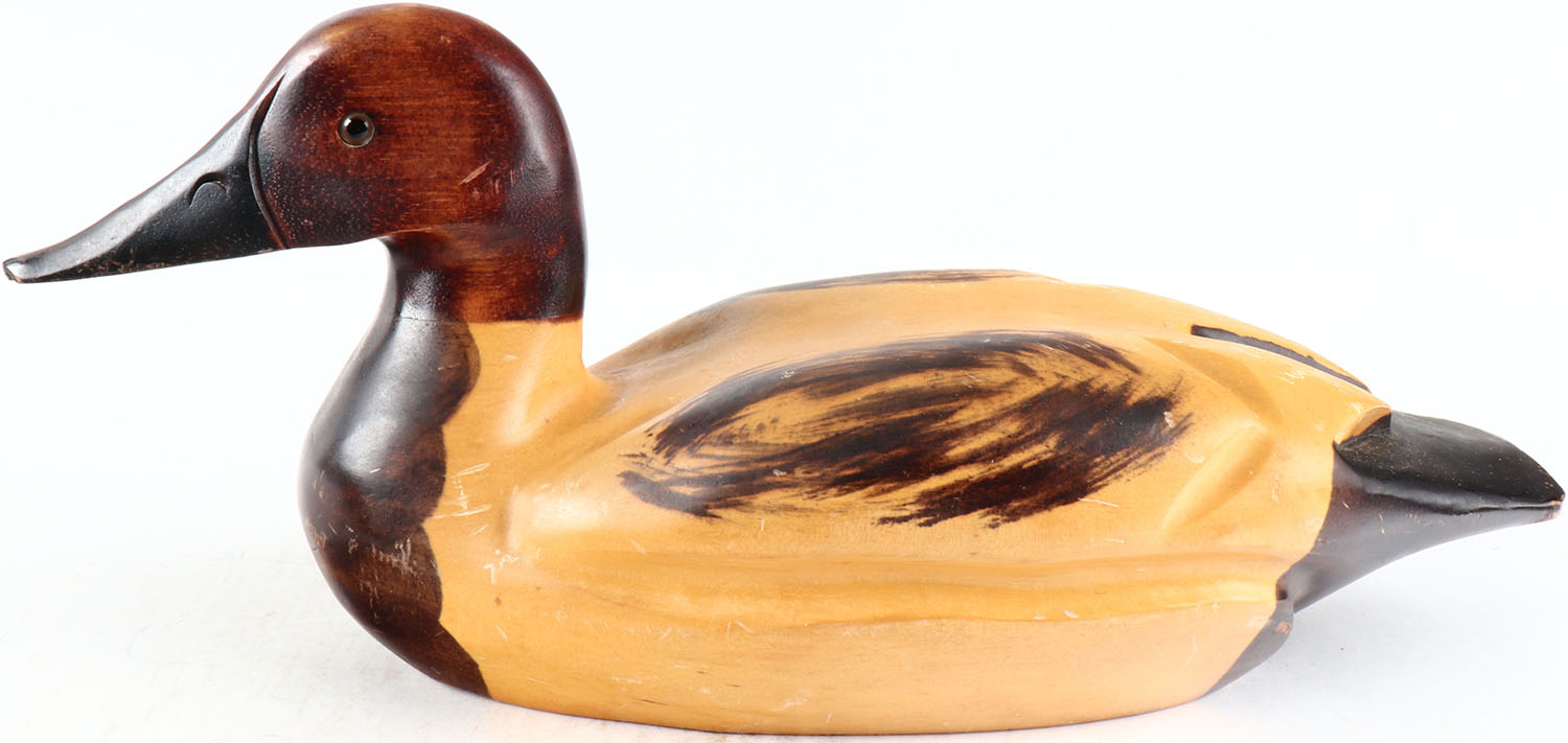 Canvasback Drake by unknown maker, glass eyes, solid wood, original paint, structurally excellent. Grade: Excellent ++ - Value: 50 to 100