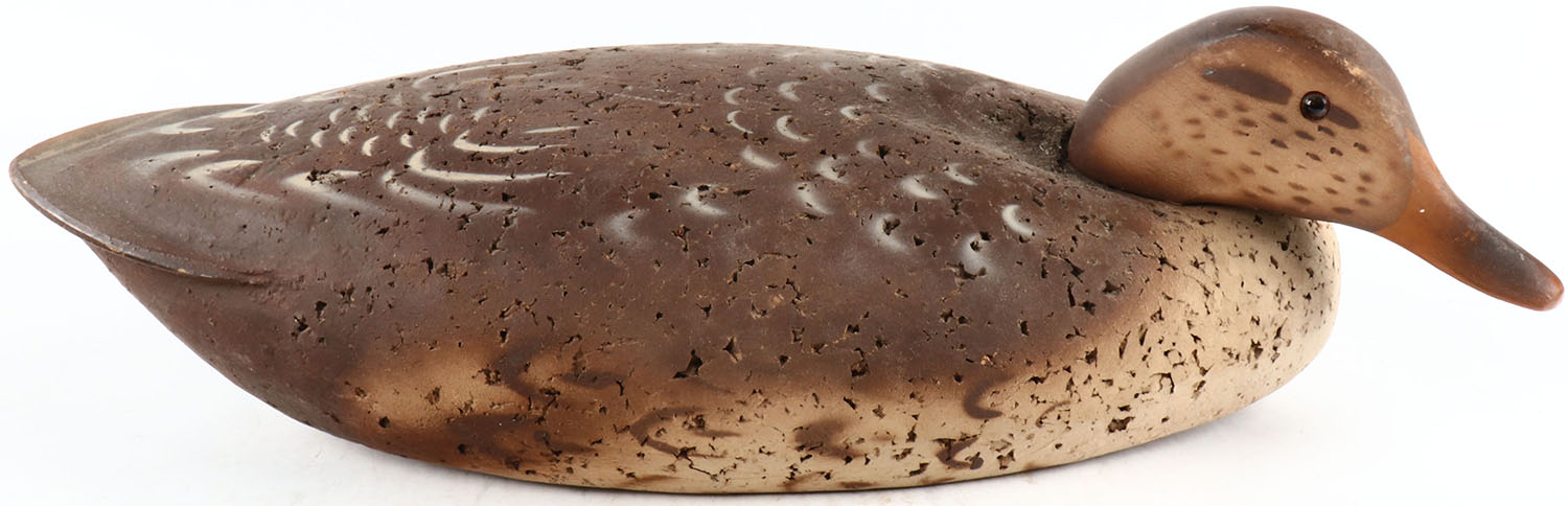Mallard Hen by unknown maker, glass eyes, solid cork body, original paint, structurally excellent. Grade: Excellent - Value: 50 to 100