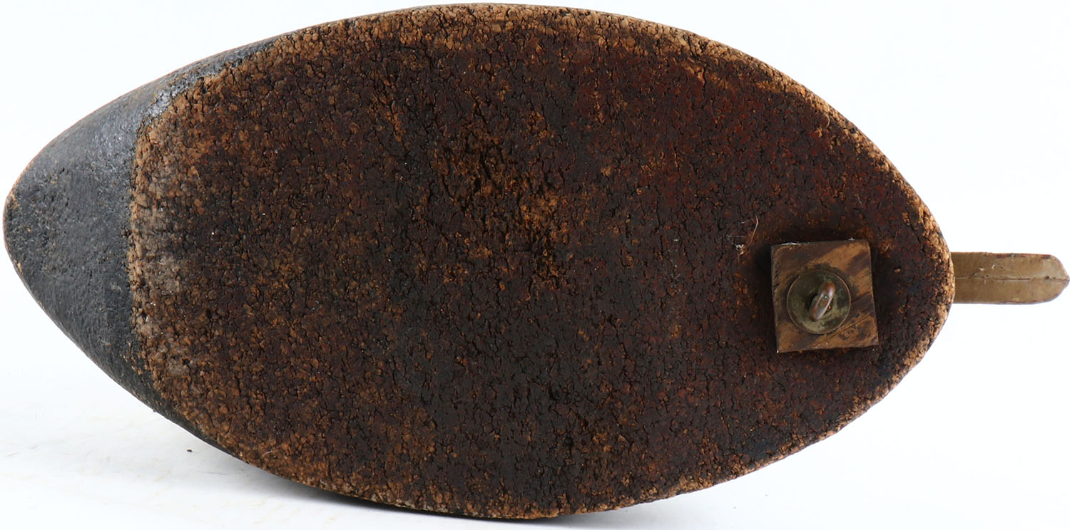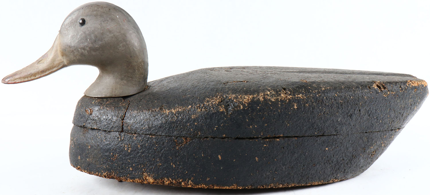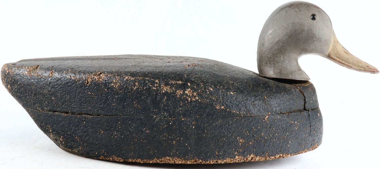 Black Duck by unknown maker, glass eyes, solid cork body, original paint, structurally excellent. Grade: Excellent - Value: 50 to 100