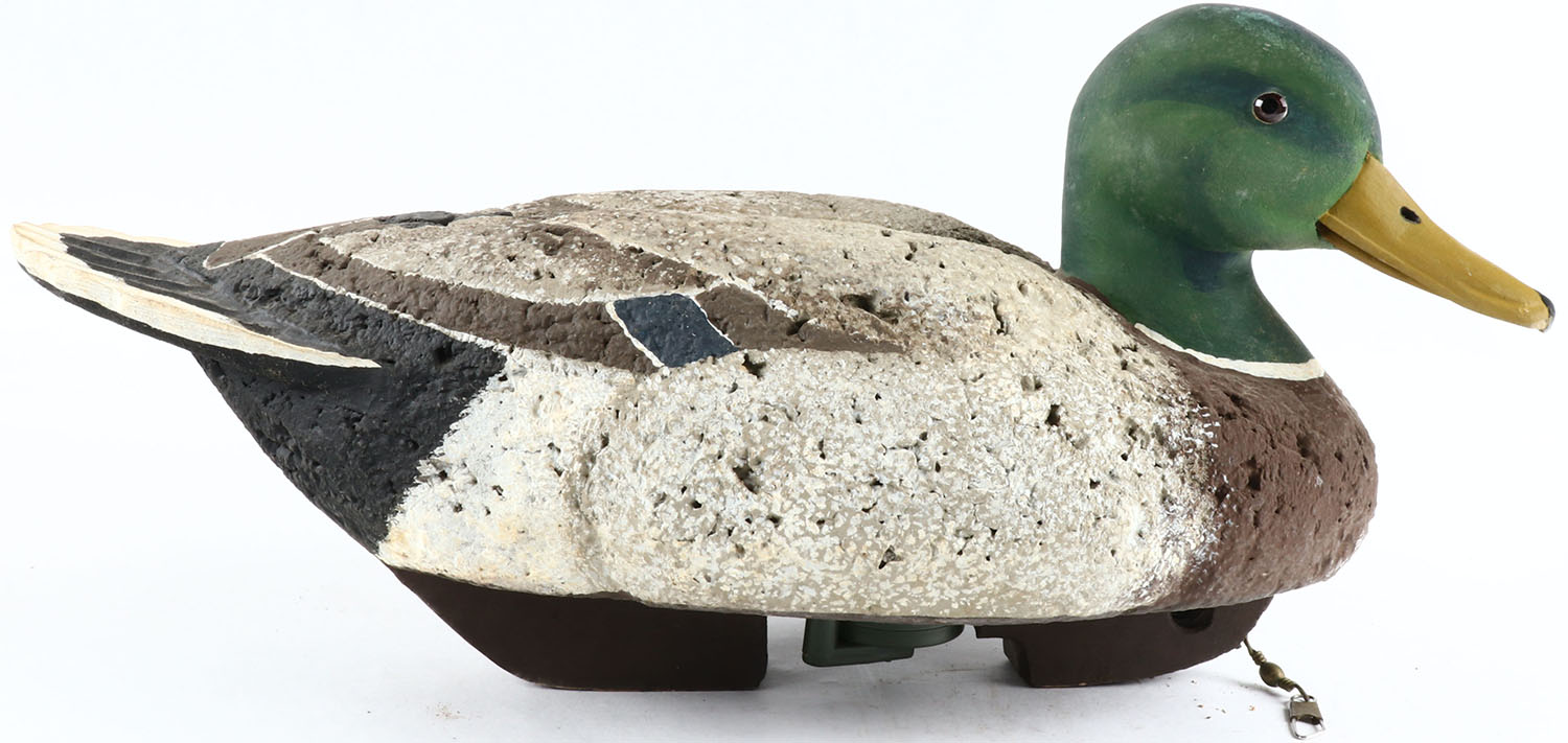 Mallard Drake by REP, glass eyes, solid cork body, original paint, structurally excellent, signed on bottom. Grade: MINT - Value: 50 to 100