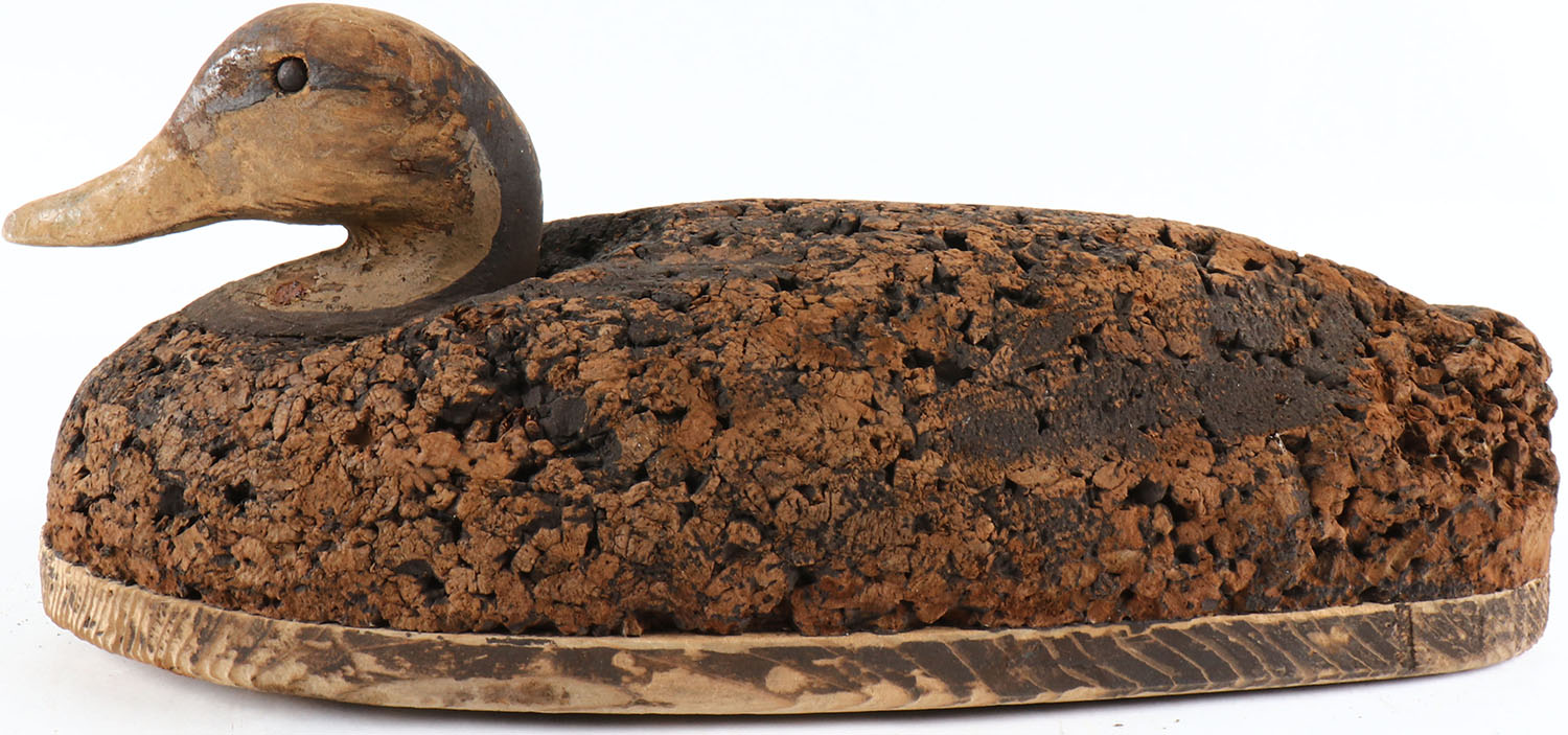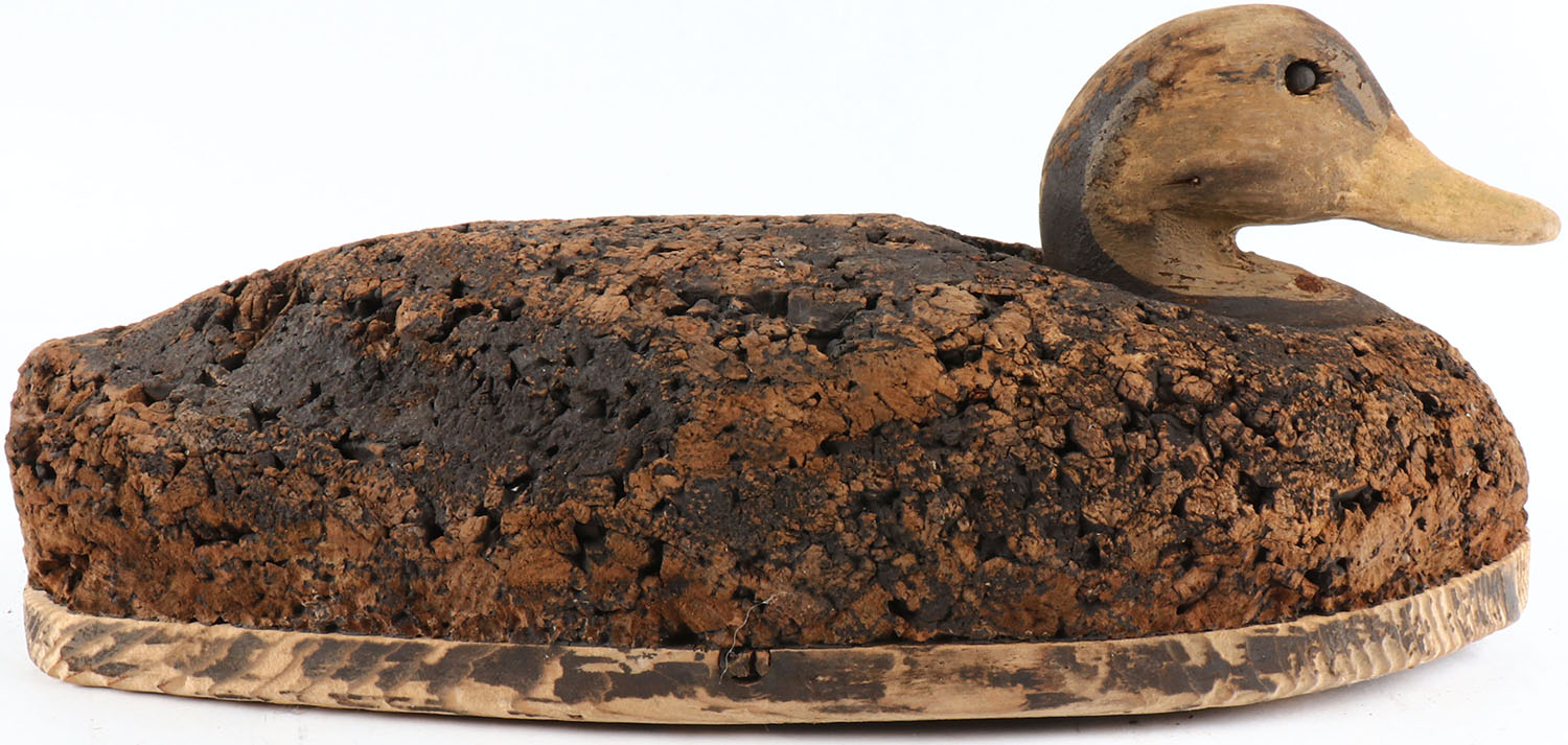 Black Duck by unknown maker, tack eyes, solid cork body, original paint, structurally excellent. Grade: Excellent + - Value: 50 to 100