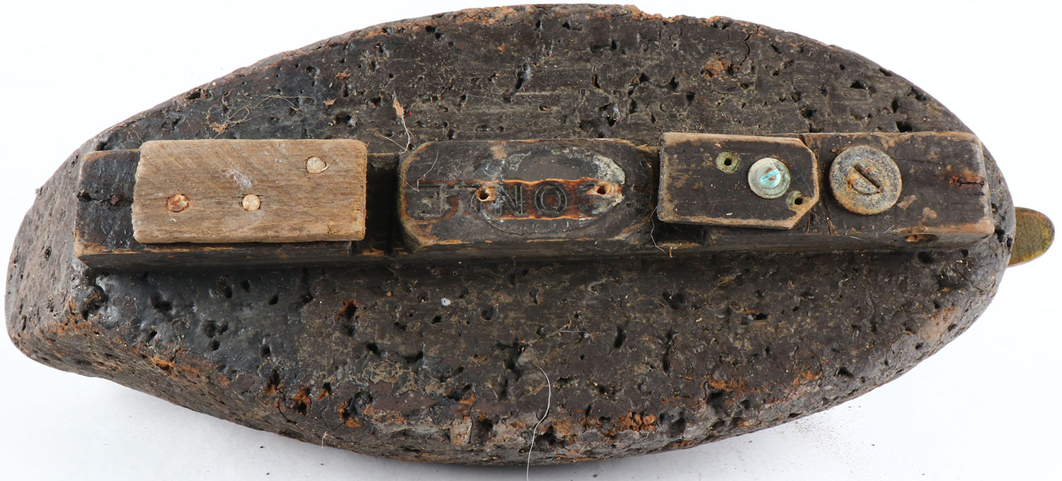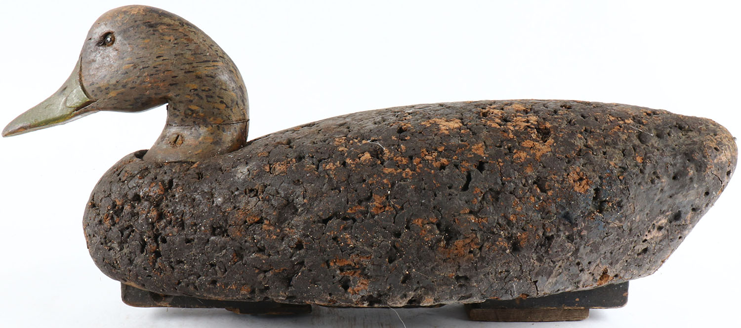 Black Duck by unknown maker, glass eyes, solid cork body, original paint, structurally excellent. Grade: Very Good ++ - Value: 50 to 100