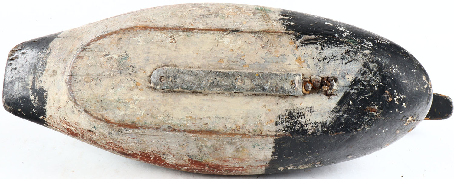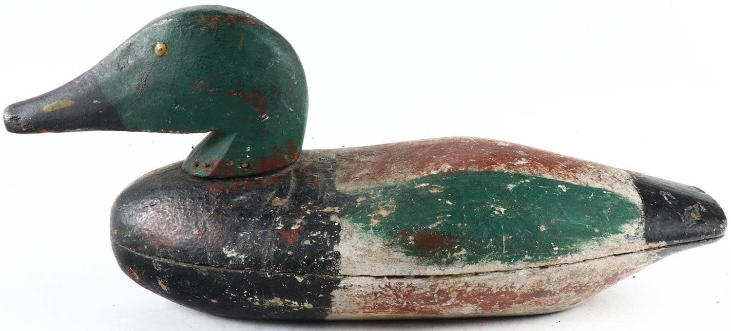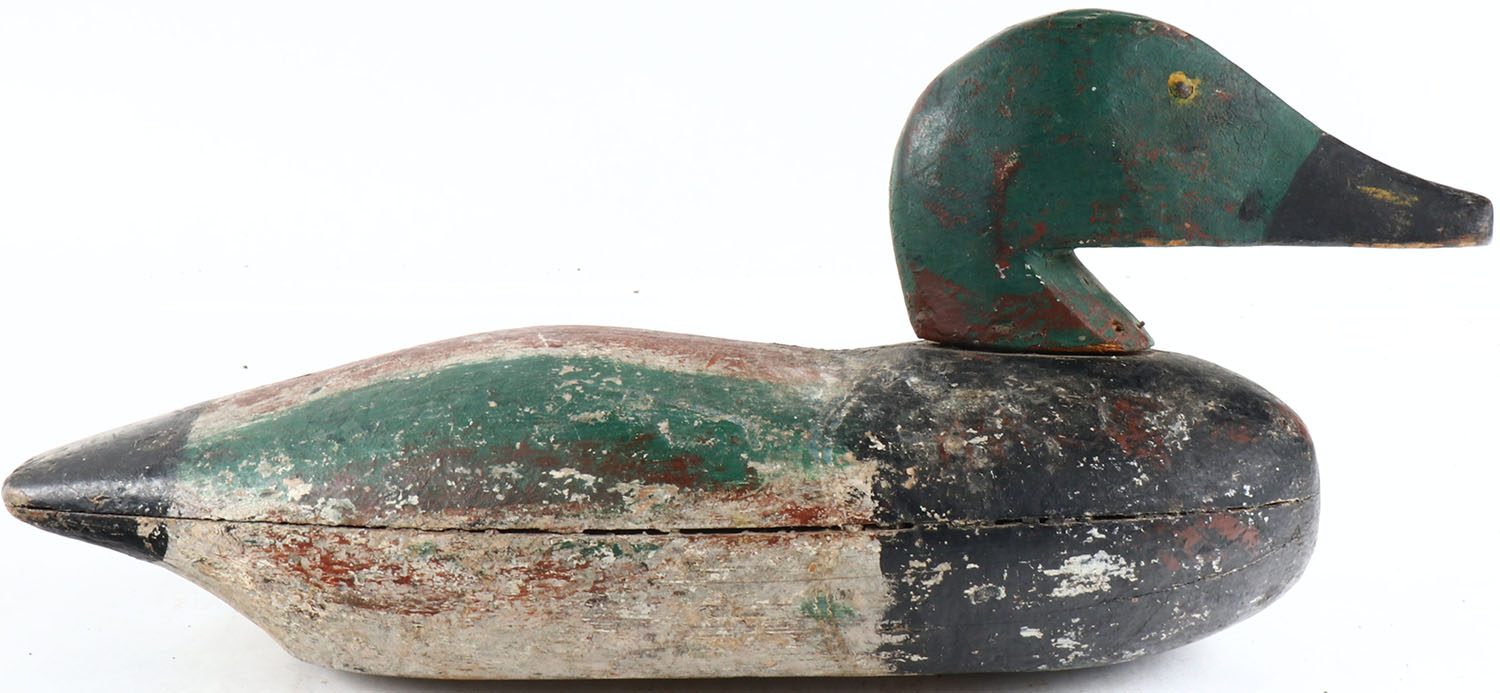 Shoveler Drake ? by unknown maker, painted eyes, solid wood, original paint, head is loose. Grade: Very Good ++ - Value: 50 to 100