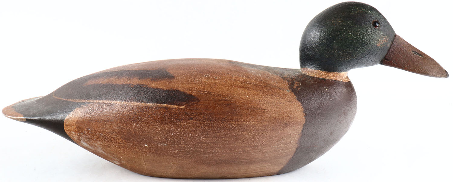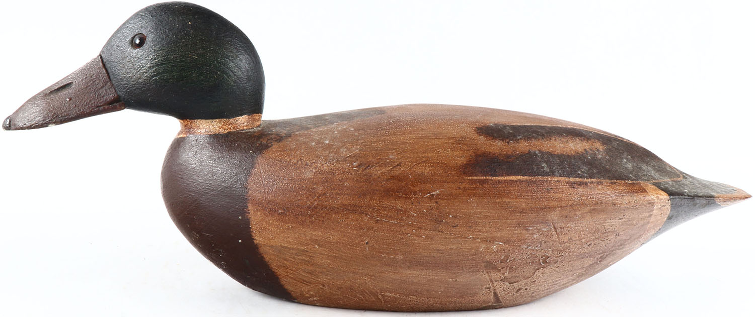 Mallard Drake by unknown maker, glass eyes, solid wood, original paint, structurally excellent. Grade: Excellent ++ - Value: 50 to 100