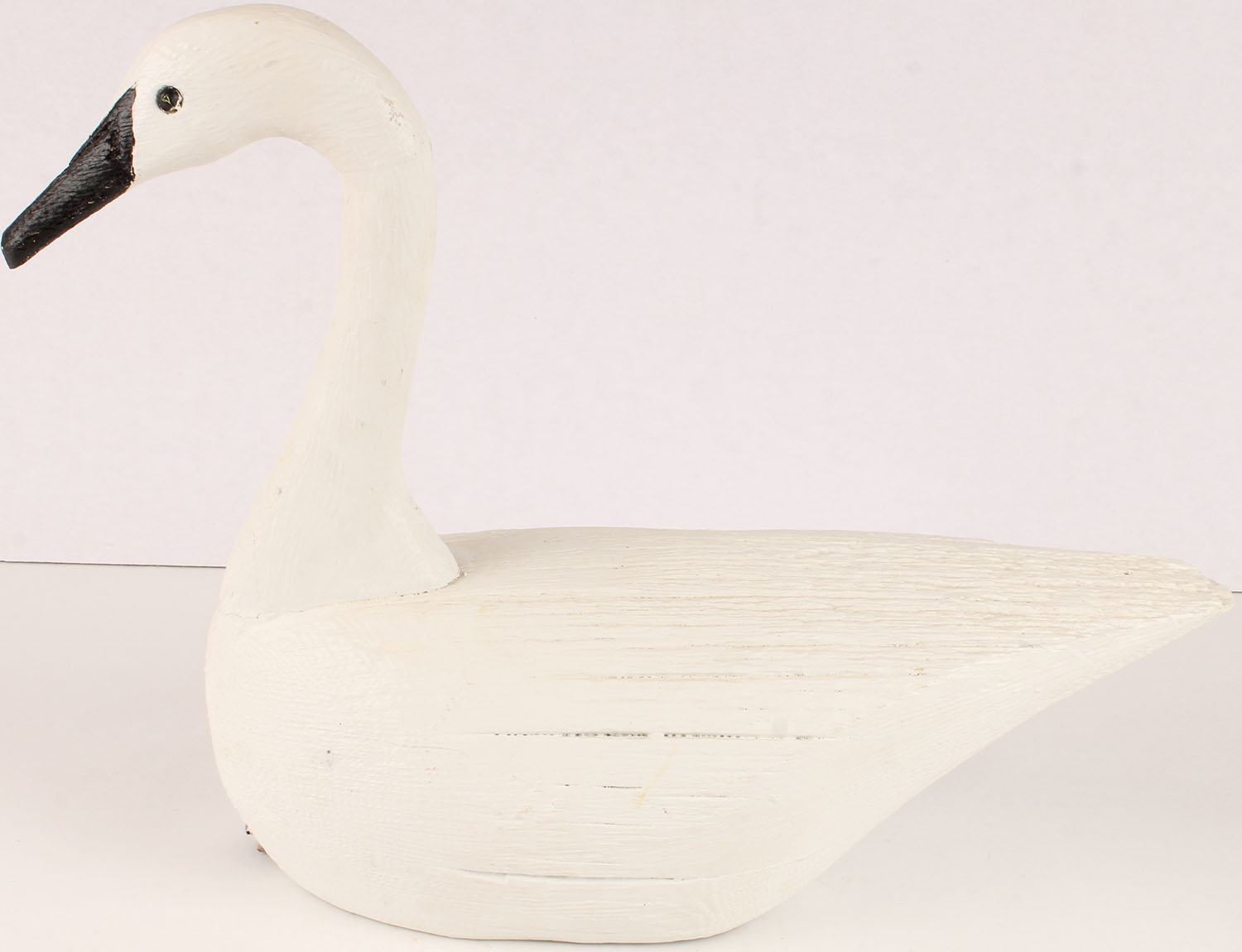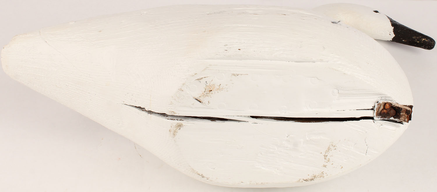 Swan by unknown maker, tack eyes, solid wood, original paint, structurally excellent, has age crack on bottom. Grade: Very Good ++ - Value: 50 to 100