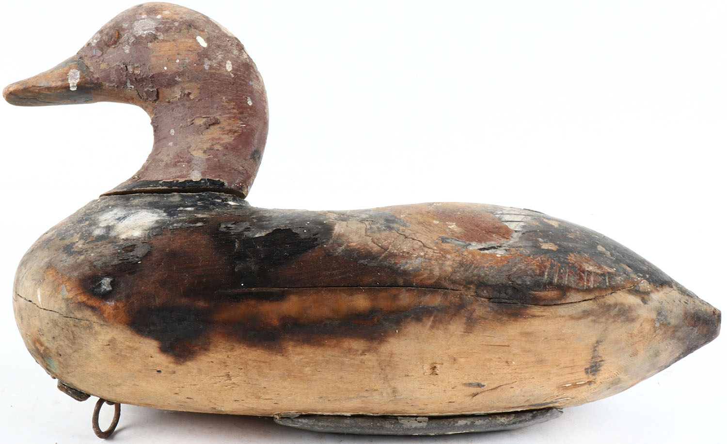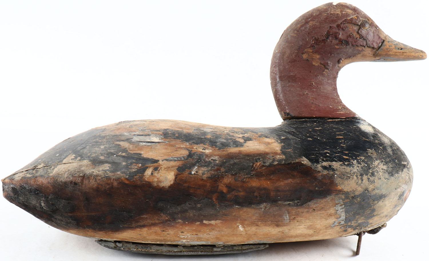 Redhead Drake by unknown maker, tack eyes, solid wood, original paint with typical wear. Grade: Very Good + - Value: 50 to 100