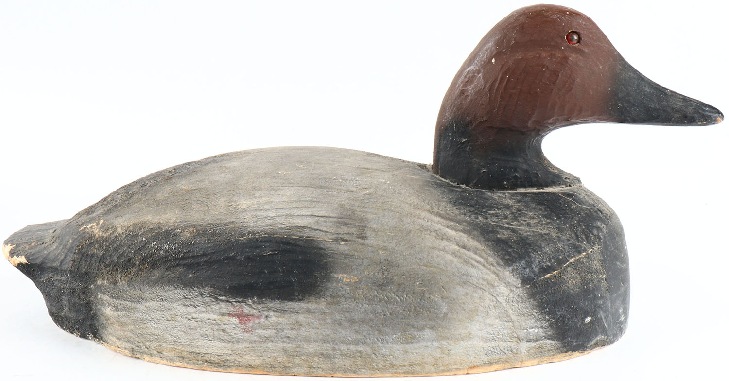 Canvasback Drake by unknown maker, glass eyes, solid balsa wood, original paint, structurally excellent. Grade: Excellent - Value: 50 to 100