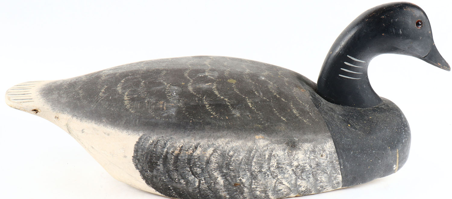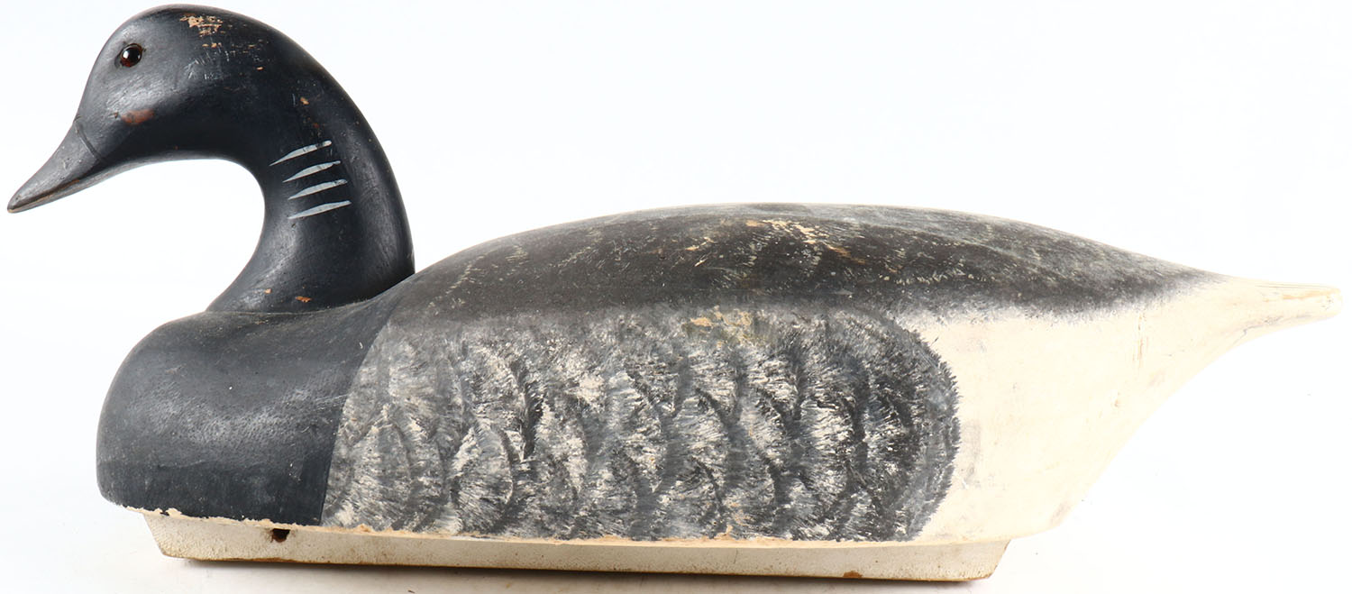 Black Brant by unknown maker, glass eyes, solid balsa wood, original paint, structurally excellent. Grade: Very Good ++ - Value: 50 to 250