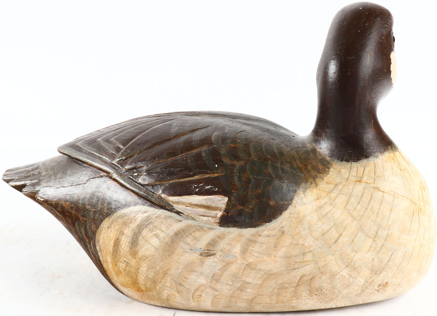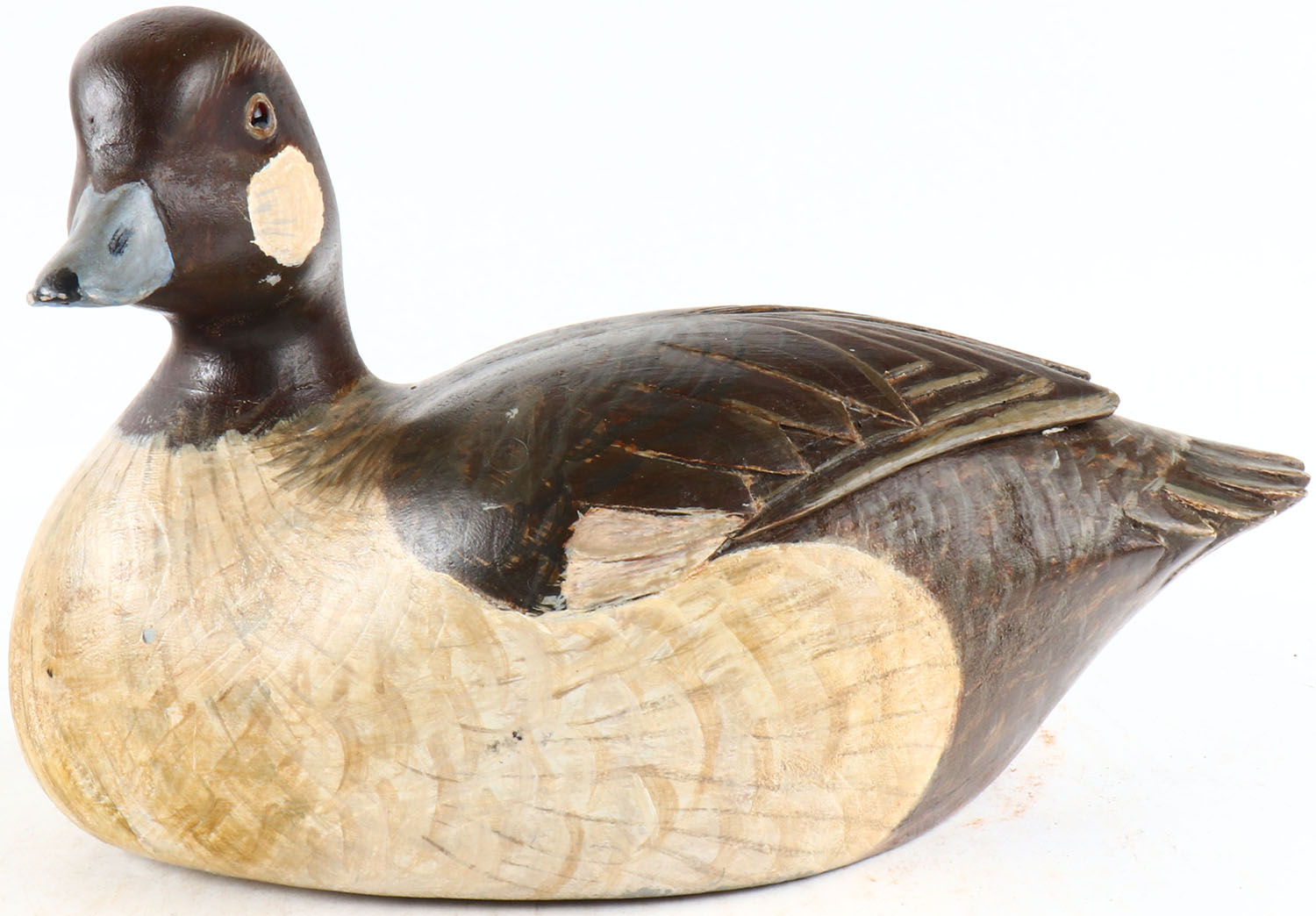 Bufflehead Hen by Danny L. Hener, Sault Ste. Marie Michigan, glass eyes, solid wood, original paint, structurally excellent, signed and branded on bottom. Grade: MINT - Value: 50 to 100