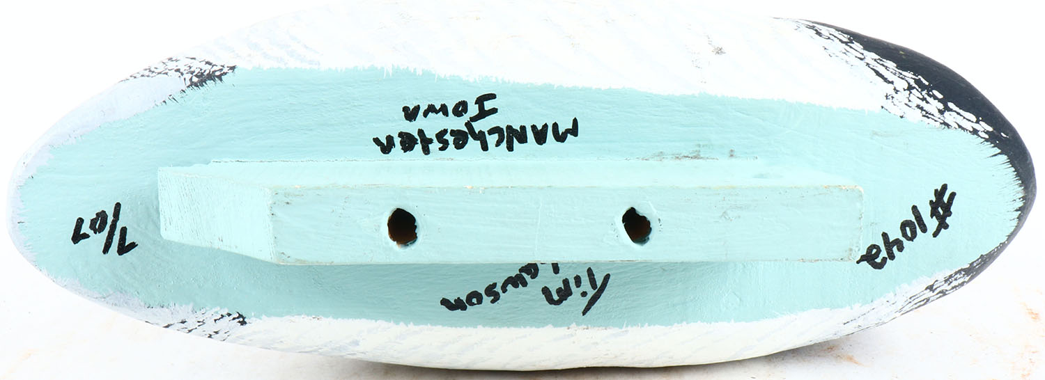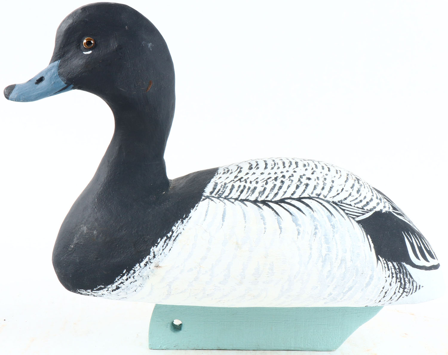 Bluebill Drake by Tim Lawson, Manchester Iowa, glass eyes, solid wood, original paint, structurally excellent, signed on bottom. Grade: MINT - Value: 40 to 80