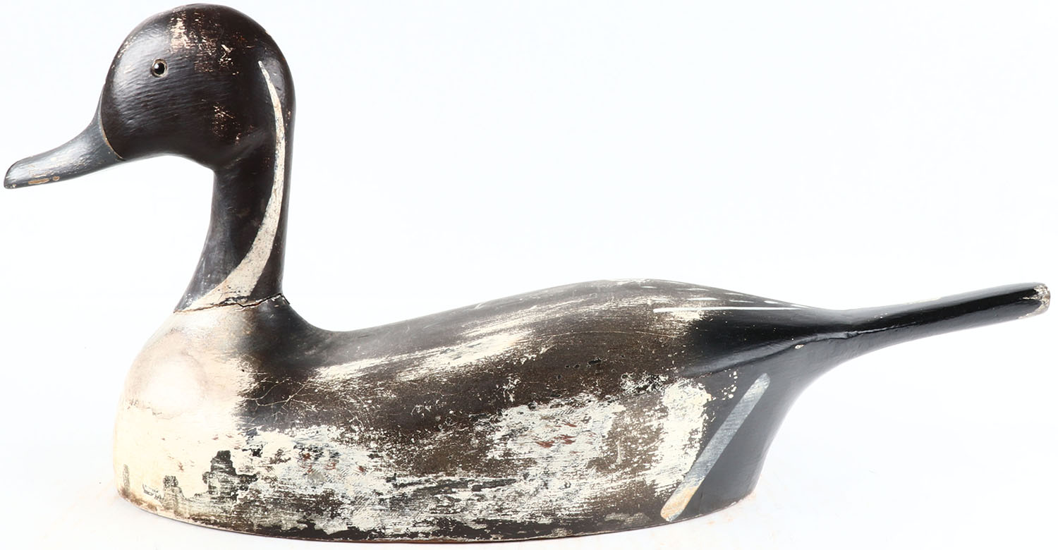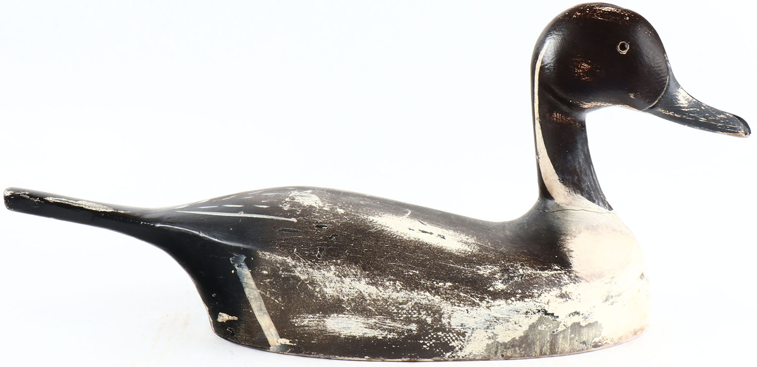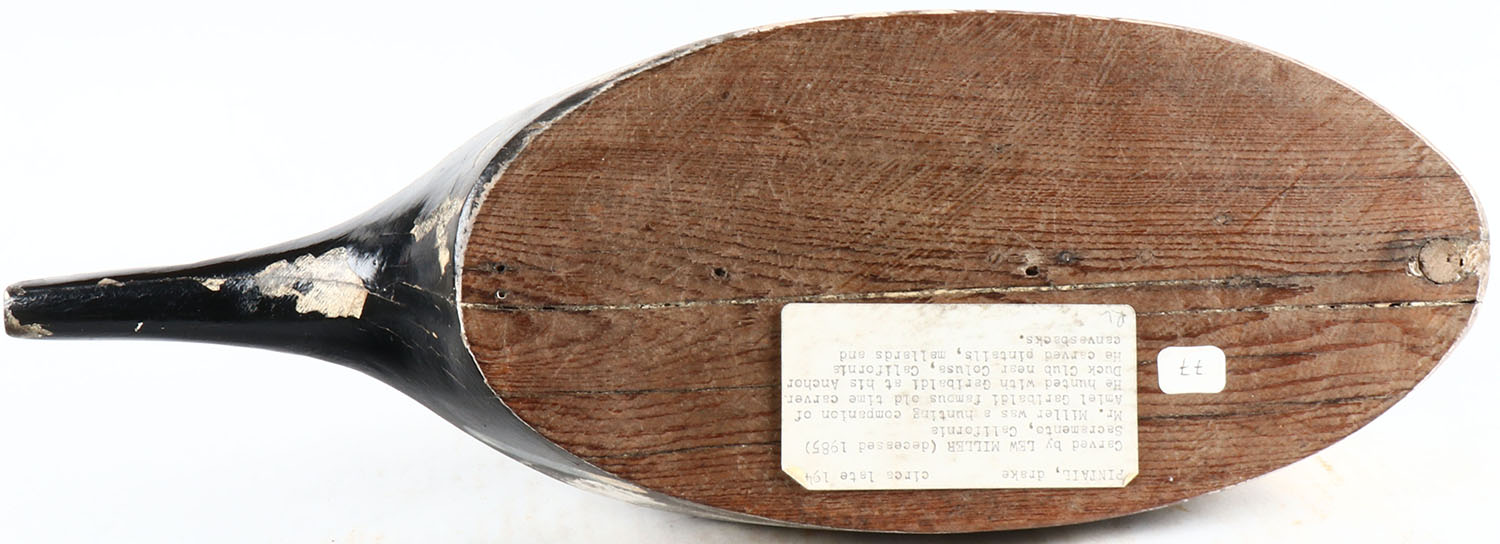 Pintail Drake by Lew Miller, Sacramento California, glass eyes, solid wood, original paint, structurally excellent. Grade: Excellent - Value: 50 to 500