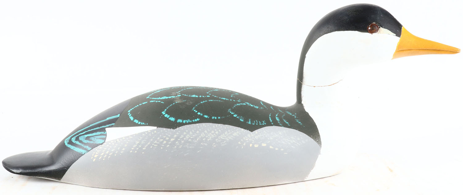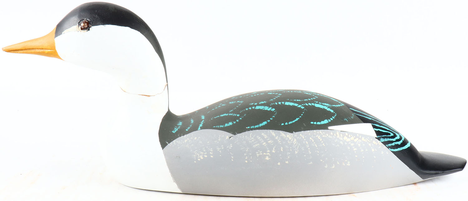 ? By Ed Gross, glass eyes, solid wood, original paint, neck is cracked, signed on bottom. Grade: Very Good + - Value: 10 to 50