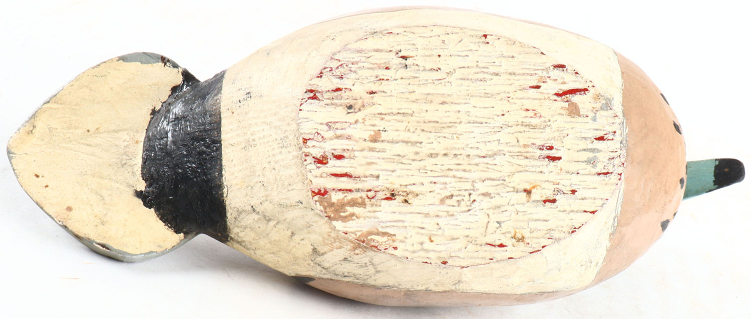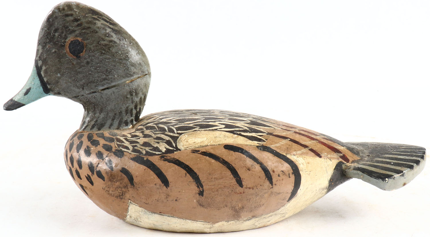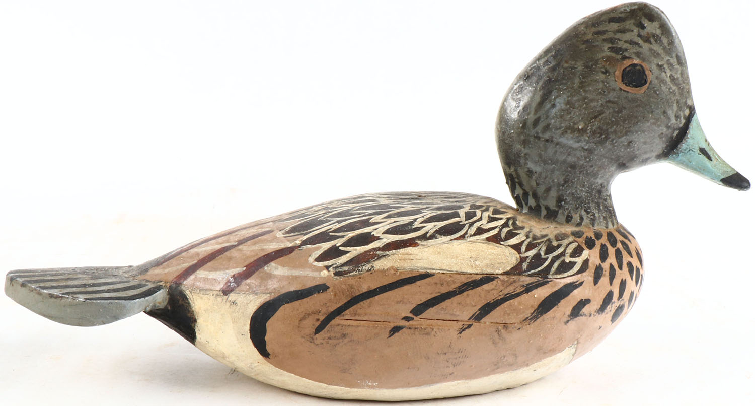 Miniature Widgeon hen by unknown maker, painted eyes, solid wood, structurally excellent. Grade: MINT - Value: 20 to 60